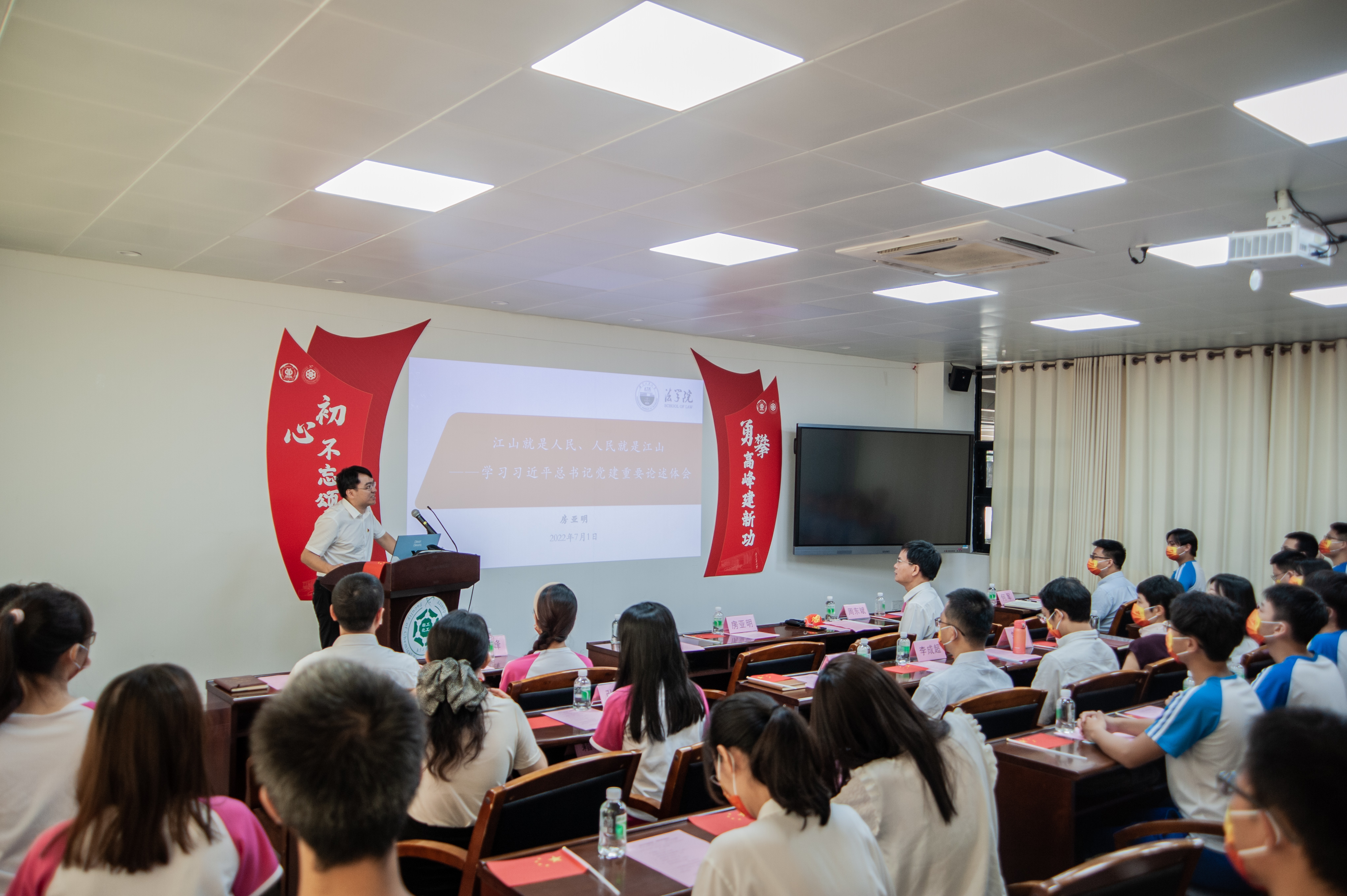 第二阶段为专题学习活动,法学院副院长房亚明老师给在场的党员讲授题为“江山就是人民、人民就是江山——学习习近平总书记党建重要论述体会”的党课。房老师深入讲解中国共产党独特的精神标识、中国共产党的初心使命,提到中国共产党是中华民族钢铁般的脊梁,中国共产党是为人类谋进步、为世界谋大同的党;中国共产党以百年奋斗的“自转”推动世界历史的“公转”,以自主探索的“新版”开辟人类文明的“新路”,以胸怀天下的“大道”引领美好未来的“大同”。