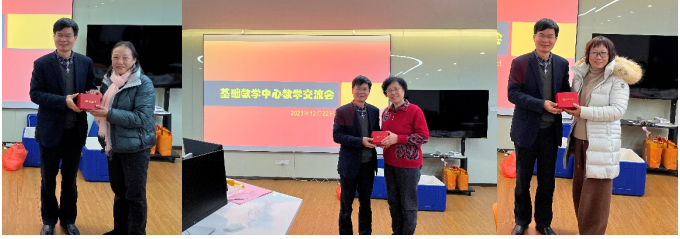 随后,周东斌书记为退休教师颁发了纪念品,向他们表示敬意和感谢。随后,郑育英副院长发言,主要强调了基础教学的重要性,并对中心未来的发展提出了殷切期望。