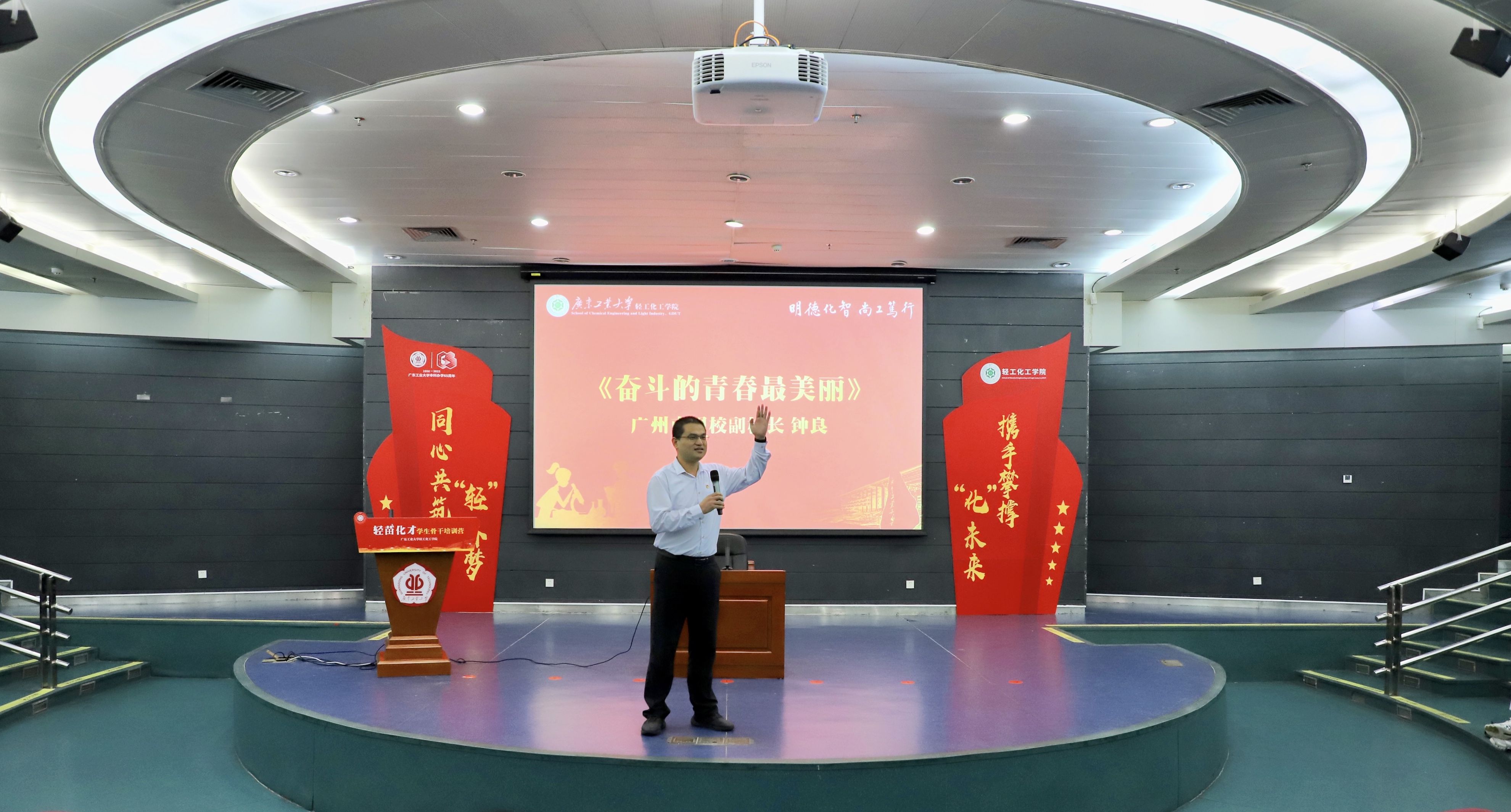 开营仪式结束后,广州市团校副校长钟良老师为各位学生骨干们讲授开营第一课:《奋斗的青春最美丽》。课堂上钟良老师以丰富的学生工作及团务工作经验,阐述了“为什么要参加学生骨干培训营”“为什么要捅破天花板,知道梦想在哪里”“长征中伙夫每天最关心的问题是什么”,并对学生骨干们提出四点希望:一是通过学生工作让尽可能多的人认识大家;二是让认识大家的人尽可能了解大家;三是让了解大家的人尽可能支持大家;四是让支持大家的人尽可能多的宣传大家,从而形成“认识-了解-支持-宣传-认识”的良性循环。