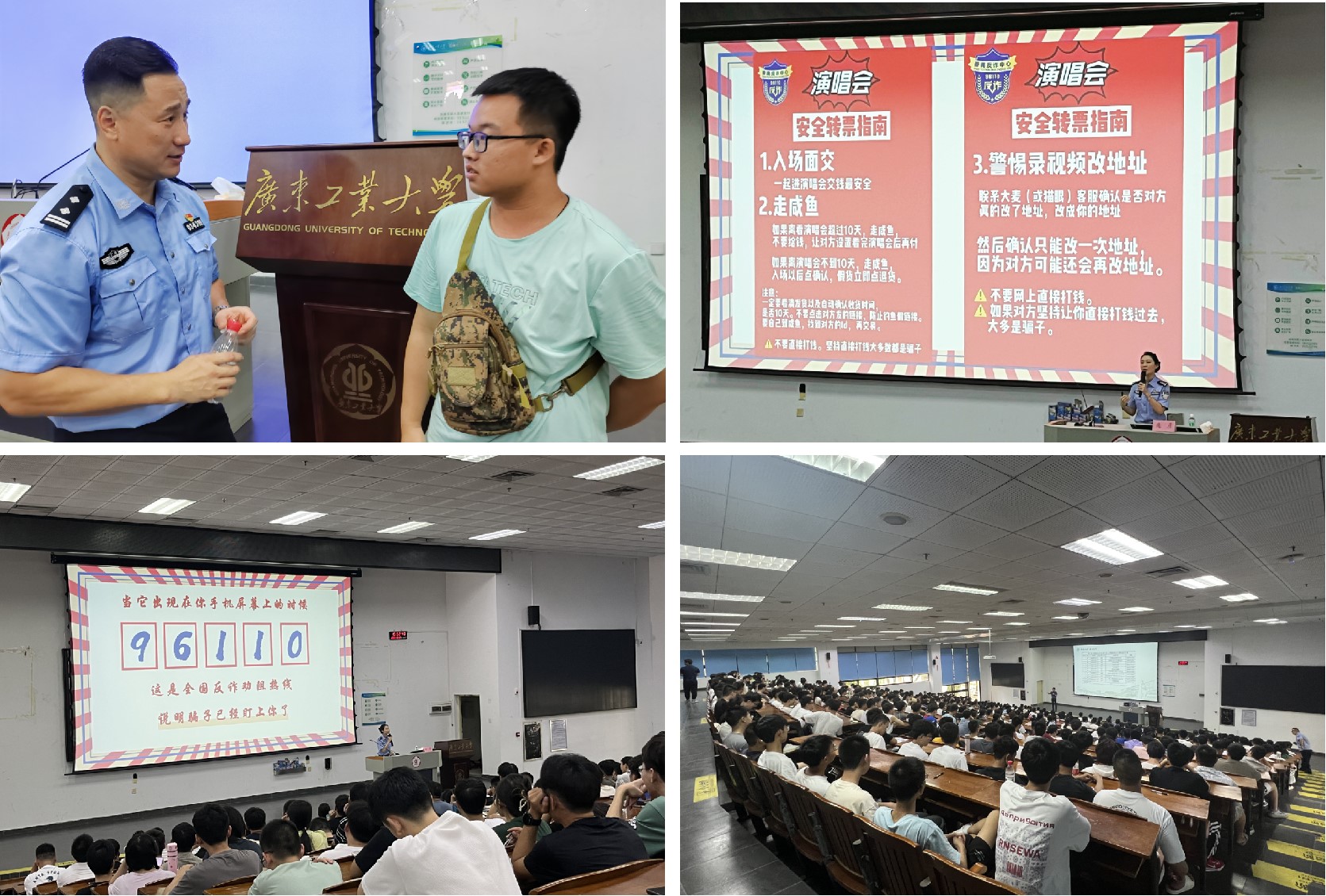 正值开学季,电信网络诈骗频频发生在我们的身边,为了进一步提高学生的反诈骗意识和自我保护的能力,守护好新生的“钱袋子”,强化防范电信网络诈骗安全教育工作,疯AV 于9月4日开展2023级新生防范电信网络诈骗主题安全教育大会。本次大会邀请番禺公安分局反诈中心王鑫警官、庞彦警官开展防诈骗专题讲座,学院党委副书记杨刚、学校保卫处詹俊宏出席会议。