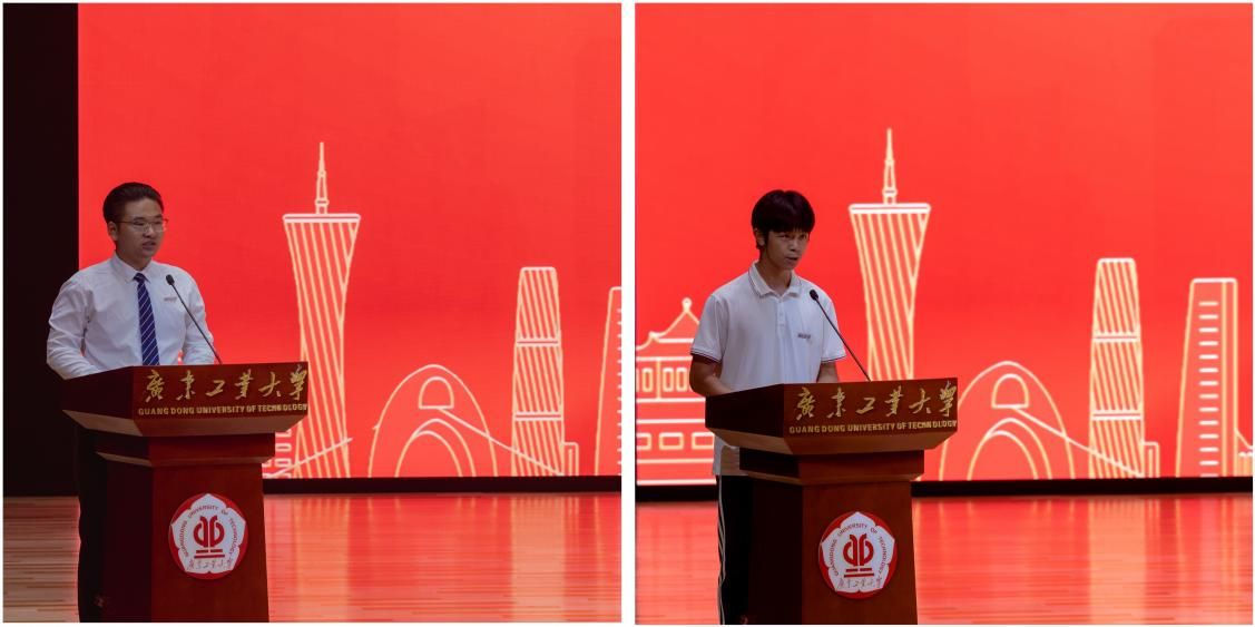 2021级化学工程与技术专业硕士生杨翼滢作为在校生代表向新生分享了她在广工求学时的感悟与体会,“作为轻化人,应当行而不辍、勇毅笃行,才能收获属于自己的精彩。”她认为在广工,只要努力,总会有展示自己的舞台;只要留心,总能有追求卓越的天地。她勉励在场新生们,作为助力广工大建成“双一流”高校的一份子,每个人都应当坚定科技报国之志,不断提高科研创新能力,为推动科技进步贡献自己的力量。
