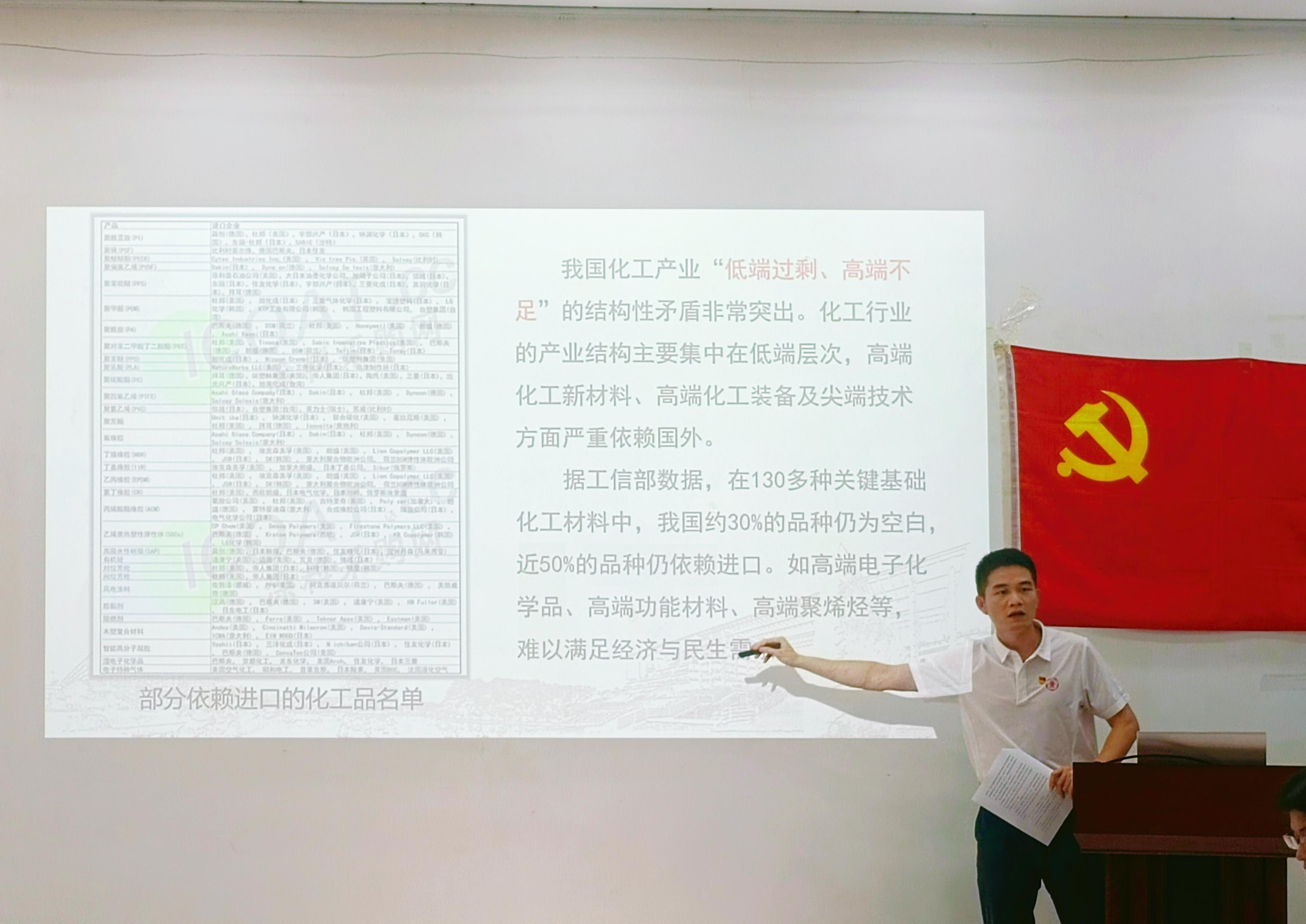 “组织一次主题教育学习凝心聚力”——杨刚老师根据党的二十大精神,以《勇担使命,助力化工科技自立自强》为主题,为学生党员讲了一场富有深意的党课。
