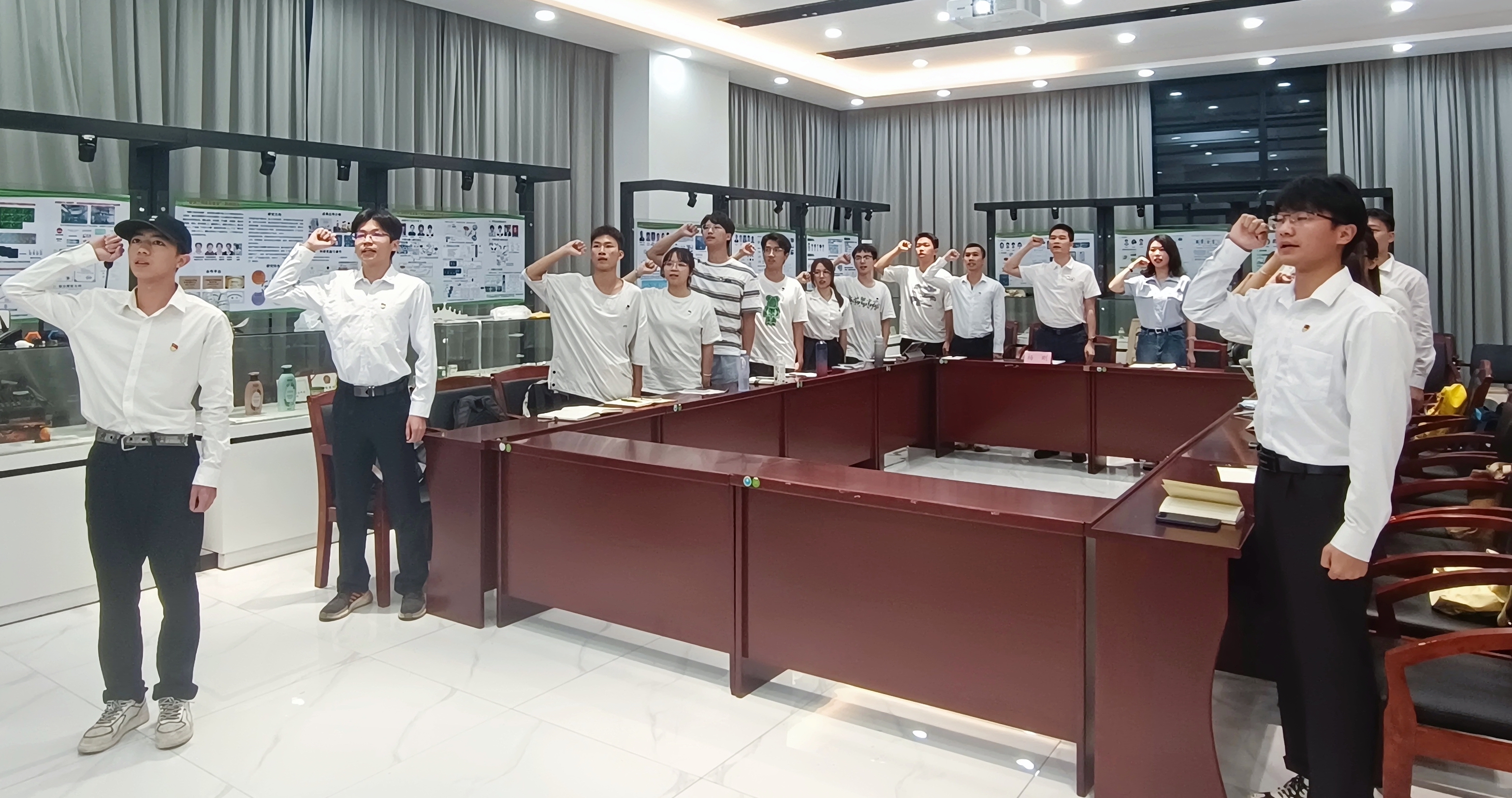 “重温一次入党誓词再忆入党初心”——学生代表林贤伟同志为领誓人带领支部全体党员重温入党誓词,唤醒红色记忆,时刻牢记新时代共产党人的初心和使命,矢志不渝地去践行我们在党旗下的誓言。
