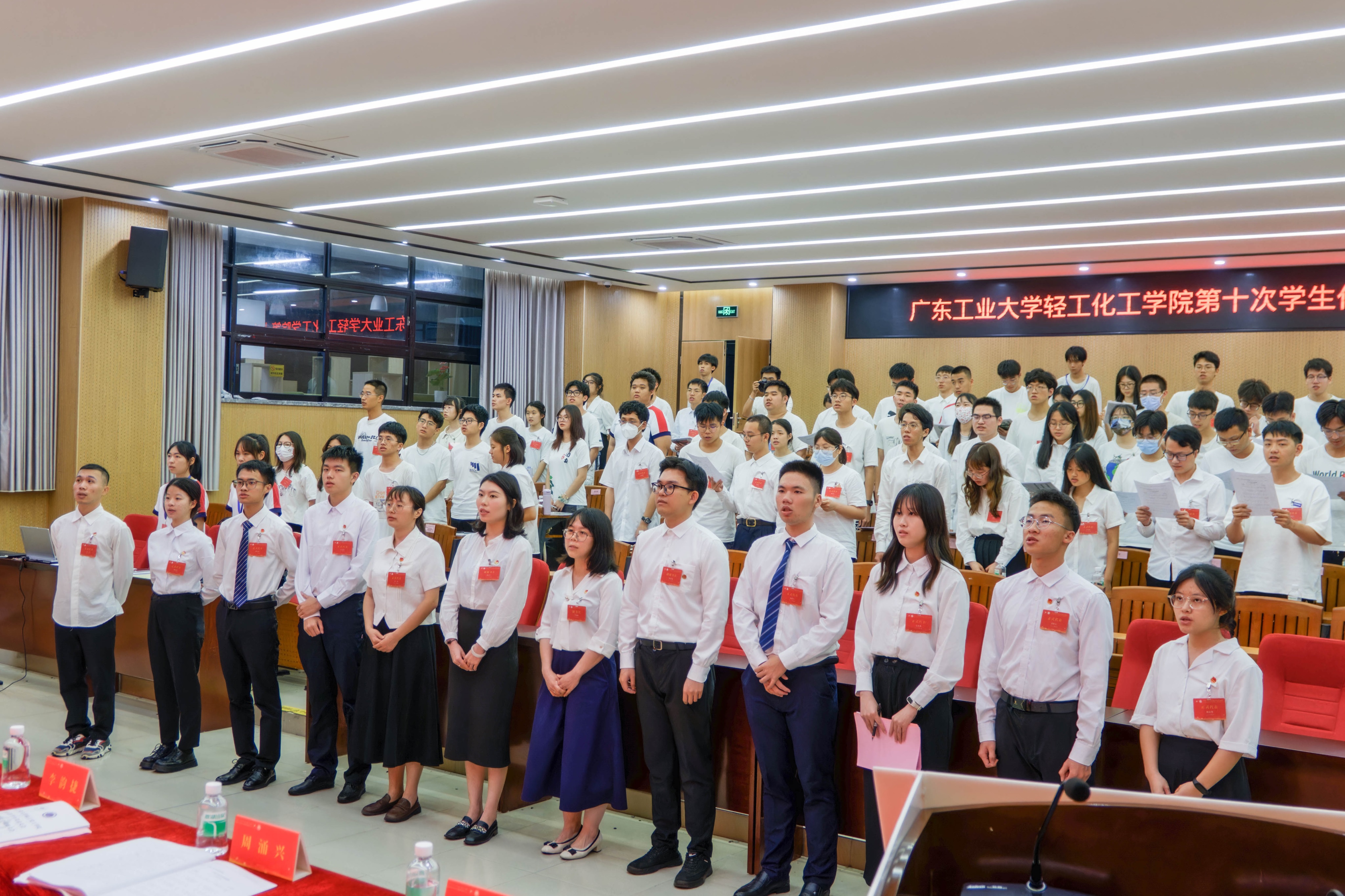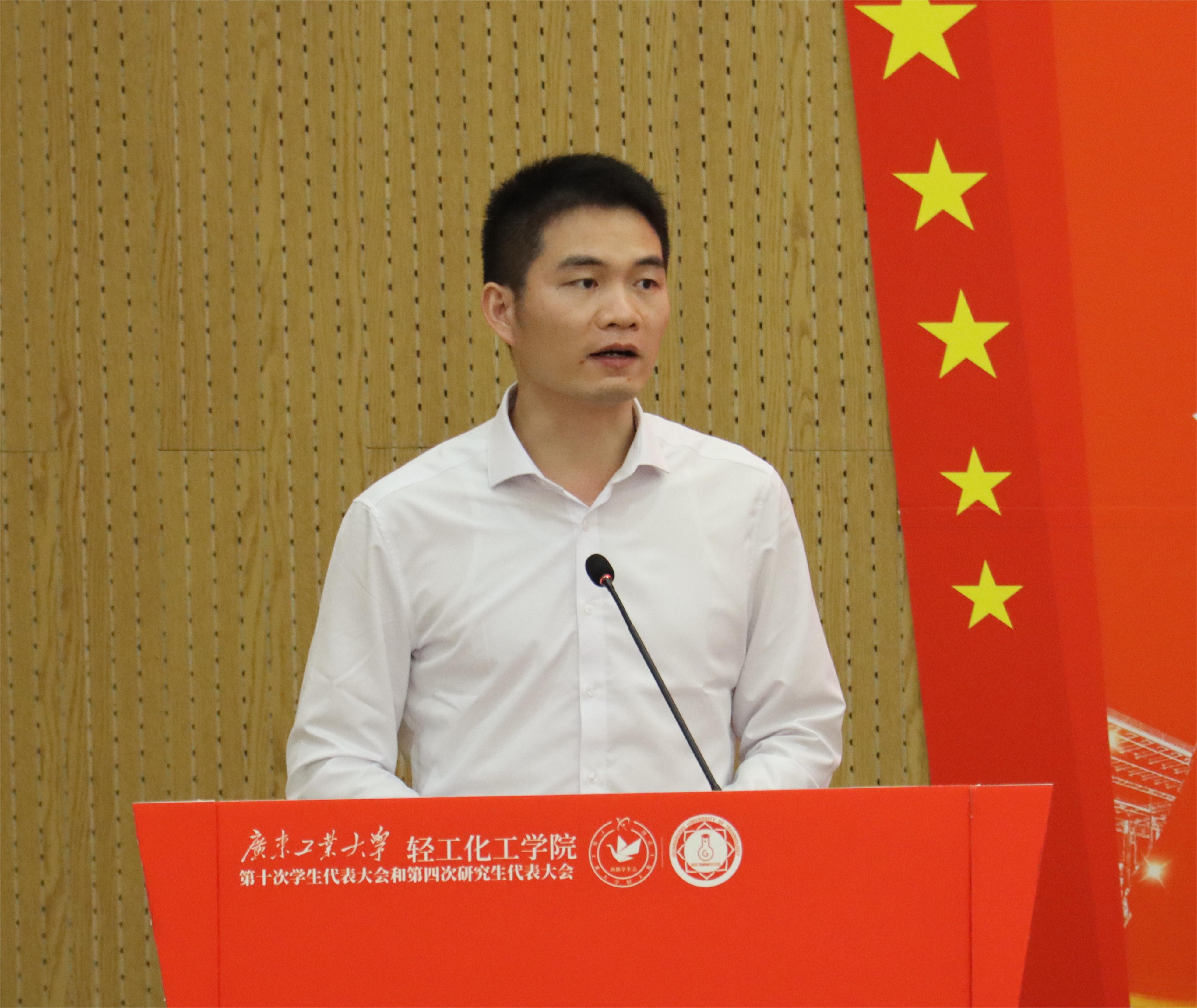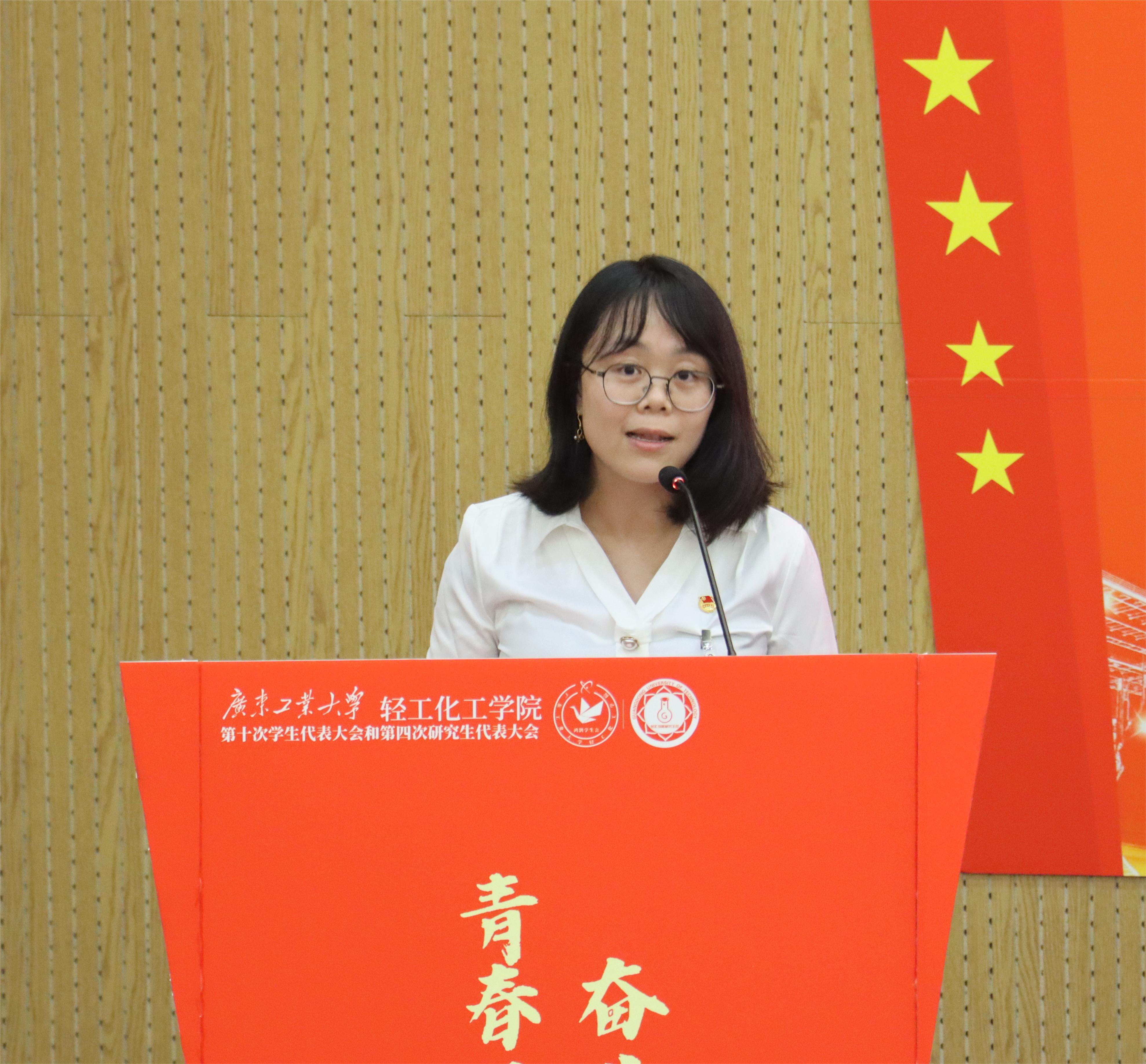 第十次学生代表大会暨第四次研究生代表大会在大学城校区工学一号馆学术报告厅顺利召开。校学生会执行主席吴业伦、校研究生会执行主席黎秋茹,学院党委副书记杨刚、学院团委指导老师李韵捷,兄弟学院学生会、研究生会主席团成员,轻工化工学院辅导员老师及54名本科生代表和40名研究生代表参加本次会议。会议由学生会秘书长徐丹宁、研究生会秘书长项浩晟等人主持。