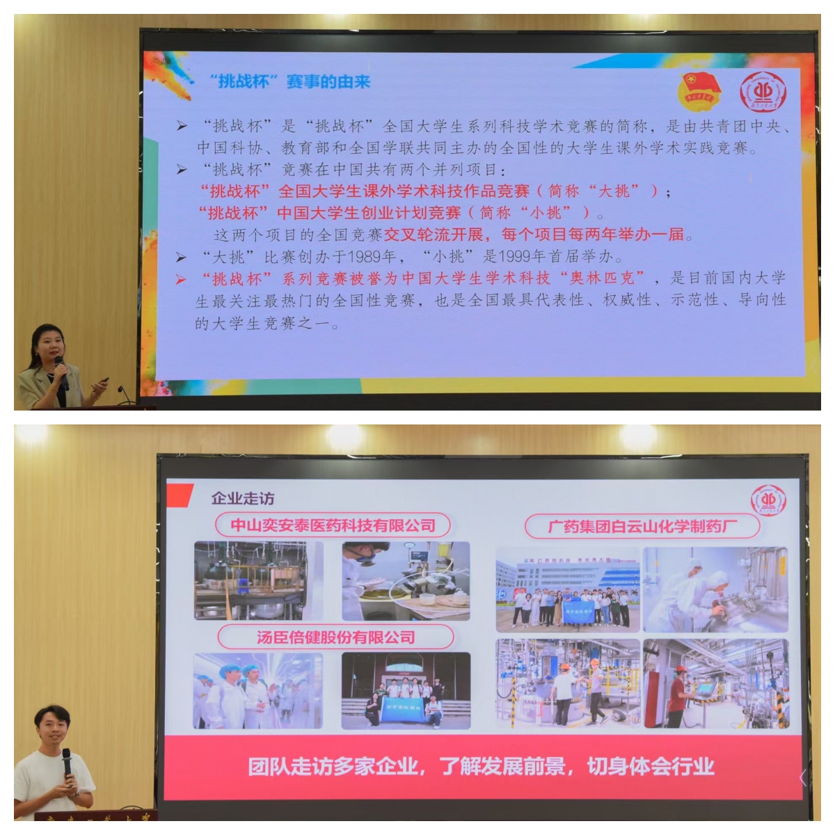 宣讲会上,吴静婷老师系统介绍了“挑战杯”竞赛的办赛宗旨、参赛资格、赛道设置、赛程安排、选题方向及奖励机制等核心内容。她结合往届金奖案例,围绕项目选题、团队组建、商业计划书撰写和路演答辩等关键环节,分享了实用经验与技巧。随后,李柱荣博士以自身参赛经历为主线,娓娓道来团队从院赛、校赛逐步晋级至省赛、国赛并最终荣获金奖的历程,为同学们提供了宝贵的备赛建议,现场同学深受启发。