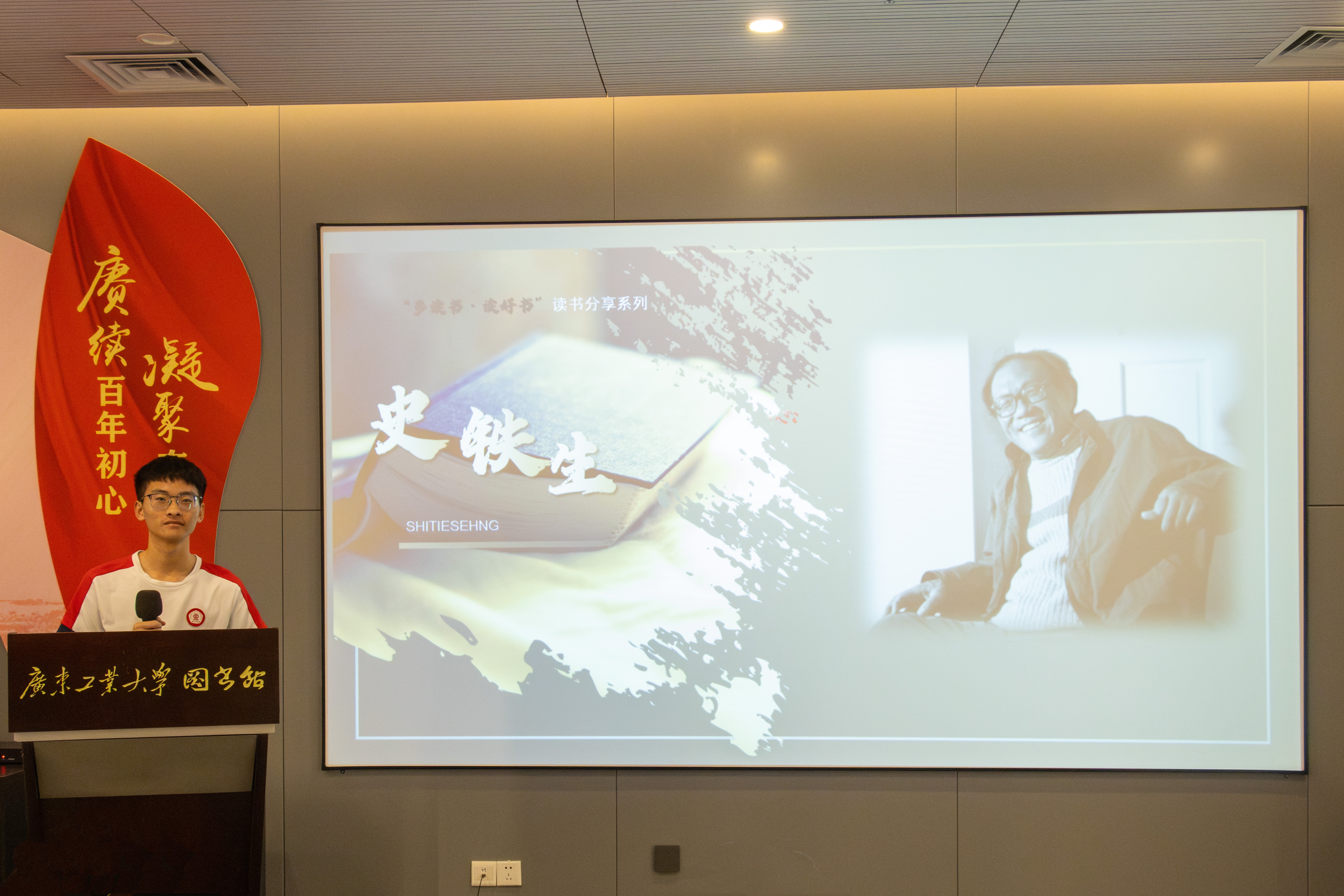 第一位读书报告人陈浩然同学向我们分享了他心中的史铁生,分析《我与地坛》中史铁生先生从悲观到平静、清澈的心路历程,阐述史铁生先生对生命的思考和感悟,指出我们在遇到困境时应当冷静下来思考,以积极的生活态度来面对成长路途的挫折。