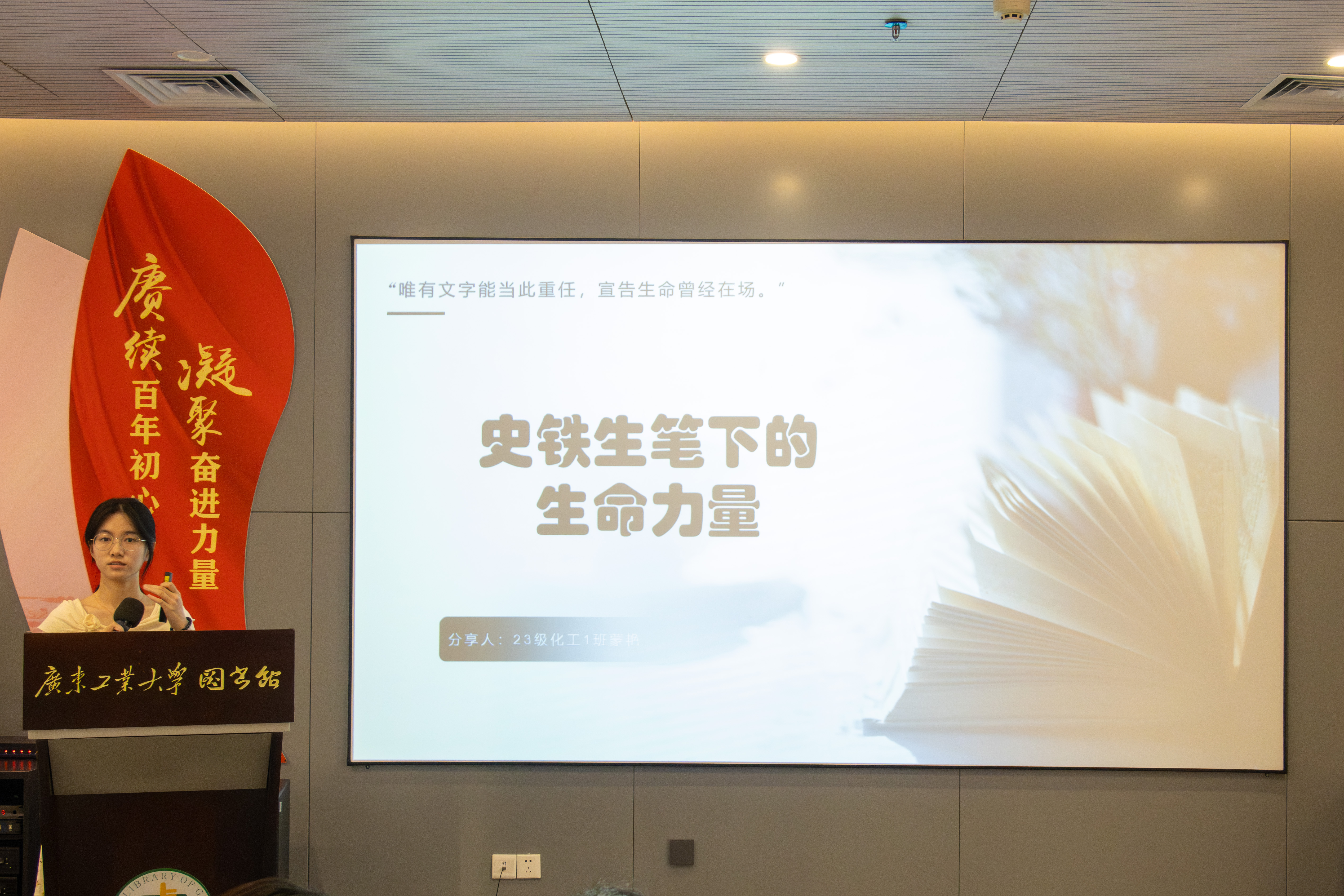 第二位读书报告人蒙艳同学向我们介绍了两部史铁生先生的作品《我与地坛》和《病隙碎笔》,分享了她从书籍中汲取力量,走出生活迷茫的低谷的个人经历,感悟到“生命的意义本不在向外的寻取,而在于内向的建立”,号召我们将目光焦聚在自身内核力的建设,不断学习,不断提升自己的人生价值。