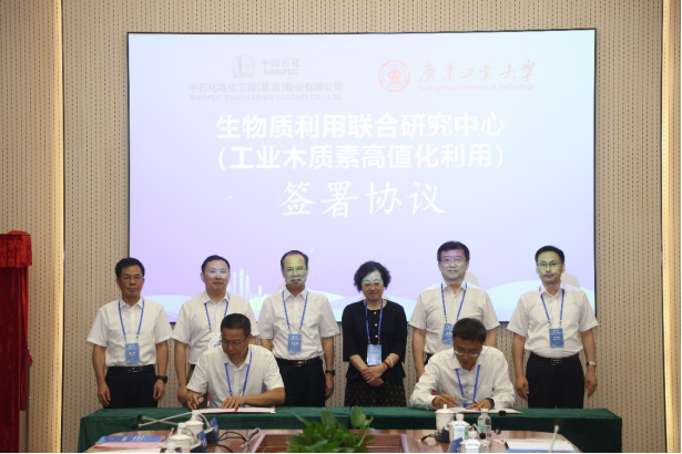 大学城校区大讲堂第一会议室隆重举行,正式签署合作协议并举行揭牌仪式,标志着双方将发挥各自优势,共同推动工业木质素高值化利用相关科技成果快速转化。学校党委副书记、校长邱学青,副校长余林,党委常委、副校长鲁仁全,中国石化集团公司首席科学家、中国工程院院士孙丽丽,中石化炼化工程(集团)股份有限公司党委书记、董事长蒋德军,中石化炼化工程(集团)股份有限公司副总经理冯迪等出席仪式。
