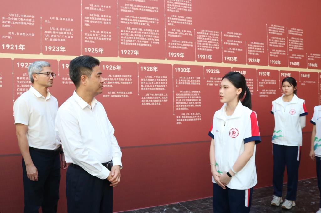 正在海丰县开展暑期“三下乡”社会实践活动的师生。学校党委副书记朱蔚蔚、陈卓武,党委常委、宣传部部长张育广等陪同看望。