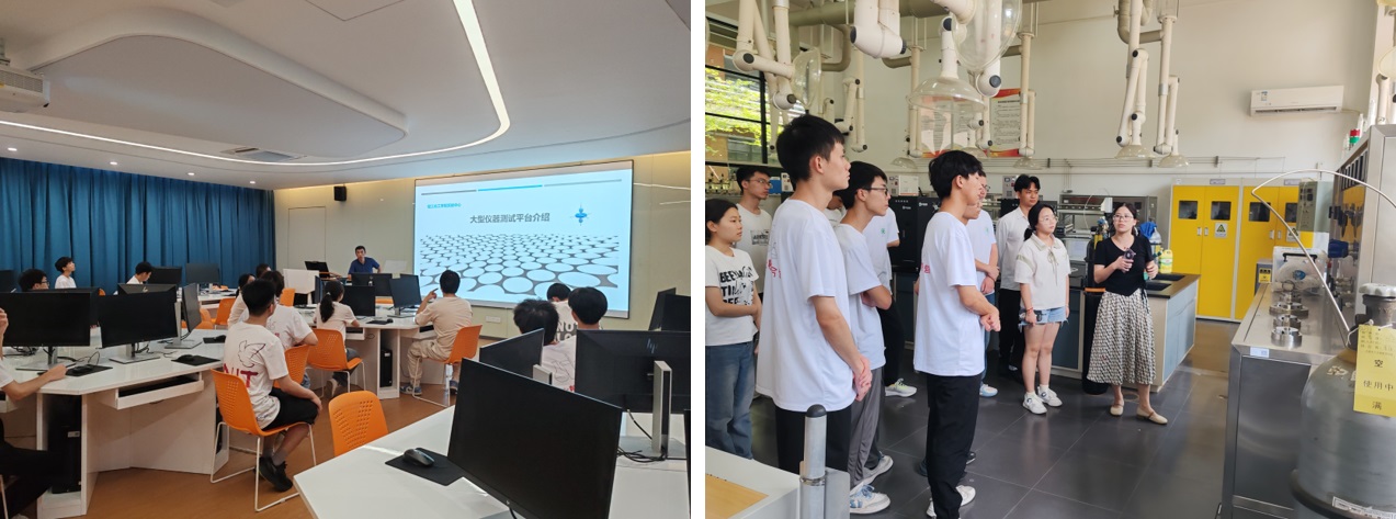7月8日下午,营员在学院实验中心余坚老师和蔡晓兰老师的带领下,参观了学院大型仪器测试平台实验室,为营员们介绍了测试仪器的基本原理、用途、注意事项等。在参观过程中,营员们展现出了浓厚的兴趣,积极与老师及研究生们就学院现有的科研团队与实验室状况展开了热烈交流。这一过程不仅满足了他们的好奇心,也使他们深刻认识到轻化学院强大的科研能力及其蓬勃发展的强劲势头。