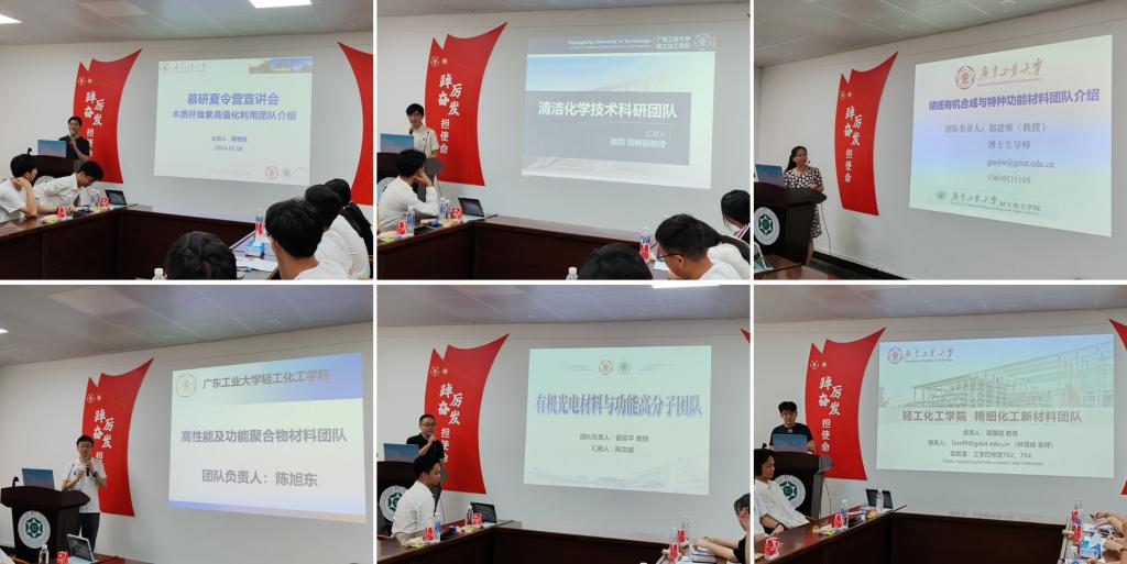 2024年7月7日上午,第九届“慕研”夏令营正式拉开帷幕,学院何军副院长、张文礼教授、刘全兵教授、吴颖副教授、罗继业副教授出席了本次开营仪式。何军副院长向每一位营员致以最热烈的欢迎与亲切的问候,详细地介绍了轻化学院的整体概况及研究生培养情况,他重点介绍了学院对研究生科研能力的培养路径、专业素质的提升策略以及创新创业技能的培养方向,帮助营员对研究生阶段的学习生活有更加清晰且全面的认识。最后,何军副院长热情地欢迎校内外的各位同学积极报考我校研究生,期待与大家共襄学术盛举,携手开创更加辉煌的学术篇章。