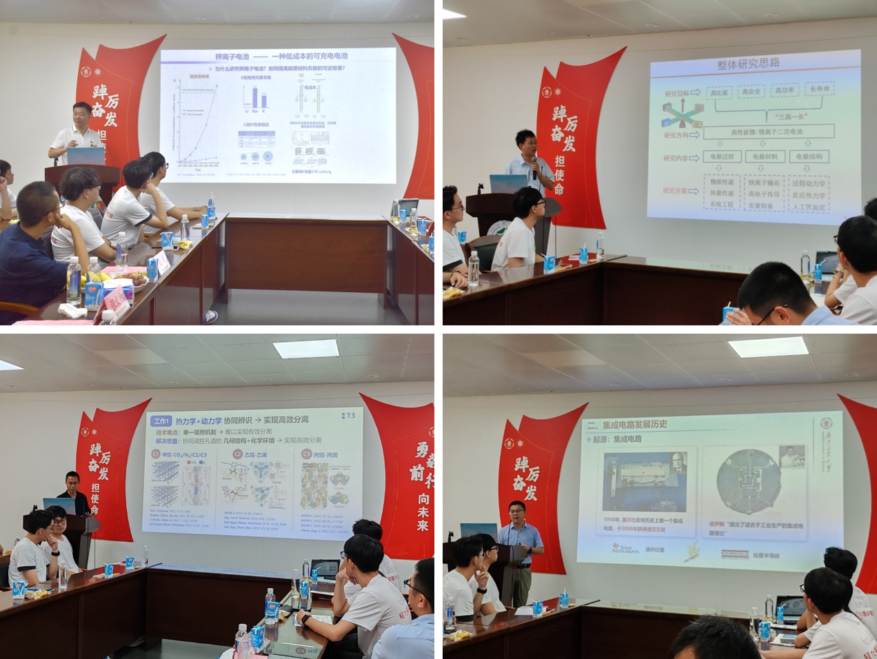 在学术讲座环节,国家级高层次人才张文礼教授、珠江特聘刘全兵教授、青年人才吴颖副教授及罗继业副教授分别为同学们准备了主题为《高性能锂/锂离子二次电池研究》、《木质纤维素聚集结构调控构筑先进碳电极材料》、《AI增强的MOFs智能缺陷工程及轻烃自适应分离》、《电子化学品及其在集成电路制造中的应用》的四场学术盛宴。老师们不仅传授了宝贵的学术经验,还通过生动的案例和严谨的数据分析,展现了科学研究的魅力与价值。这一系列高质量的学术讲座,极大地拓宽了营员的知识视野,激发了他们对未知领域的探索欲望。
