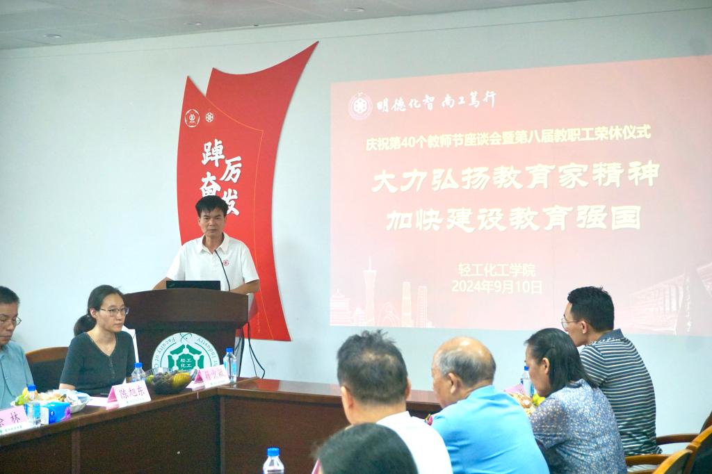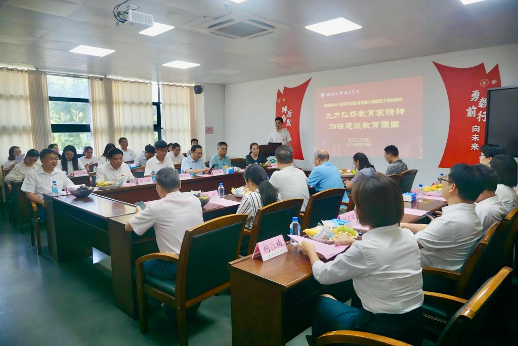 于9月10日下午在工学四号馆202会议室举行庆祝第40个教师节座谈会暨第八届教职工荣休仪式。学校副校长兼学院院长余林,学院党政领导班子成员,学院关工委、分工会教师代表,退休教职工代表,校友代表,在职教师代表,近一年新入职教师和学生代表等参加了本次活动。