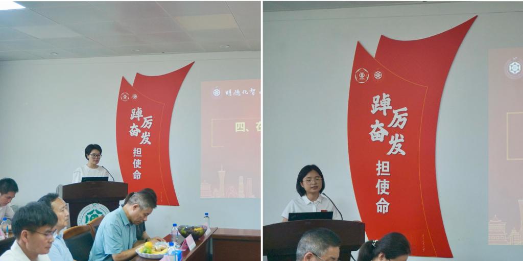 “传帮带导师”代表阳香华副教授感谢了学校学院领导和老教师们的关心、支持和帮助,分享了关于“课程建设与AI技术的融合”的思考和认识,她期待与老师们携手共进,共同推动AI在教学中的深度融入,为培养紧跟时代的创新人才贡献力量。新入职教师代表彭少敏老师向老教师们表达了深切的祝福和崇高的敬意,她表示,作为轻化学院培养的学子和新教师,她将接过老一辈的接力棒,继续发扬老教师们的宝贵精神财富,甘于奉献,潜心育人,为培养更多优秀学生而努力奋斗。