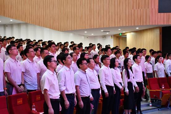 于大学城校区文化活动中心举行了2025级新生欢迎仪式暨入学教育大会。学校副校长兼学院院长余林,学院党委书记周东斌,副院长何军、郑育英、李成超、钟远红,各系、中心党支部书记、主任,教师代表,2025级班主任,全体辅导员,以及2025级全体本科新生、研究生新生参加了本次活动。本次大会由学院党委副书记杨刚主持。