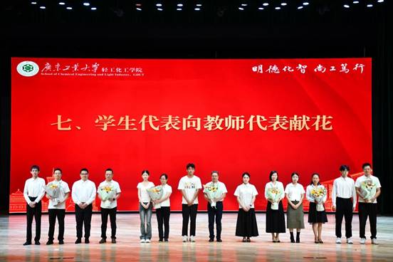 在新生代表向教师献花环节,莘莘学子手捧鲜艳的花朵,躬身向7位教师代表双手递上花束。现场掌声阵阵响起,学子们怀揣感恩与敬慕之心,以此向长期默默奉献在教育一线的老师们表达崇高的敬意与诚挚的感谢。