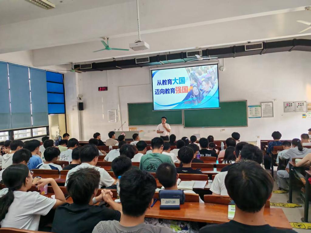 10月16日上午,学院党委书记周东斌以“从教育大国迈向教育强国”为主题,为2025级新生讲授了一堂深刻而生动的思政第一课。课程围绕国家《教育强国建设规划纲要(2024—2035年)》,系统阐述了教育强国的战略意义、建设基础、发展成就与未来方向,以及学院为教育强国所做的生动实践。