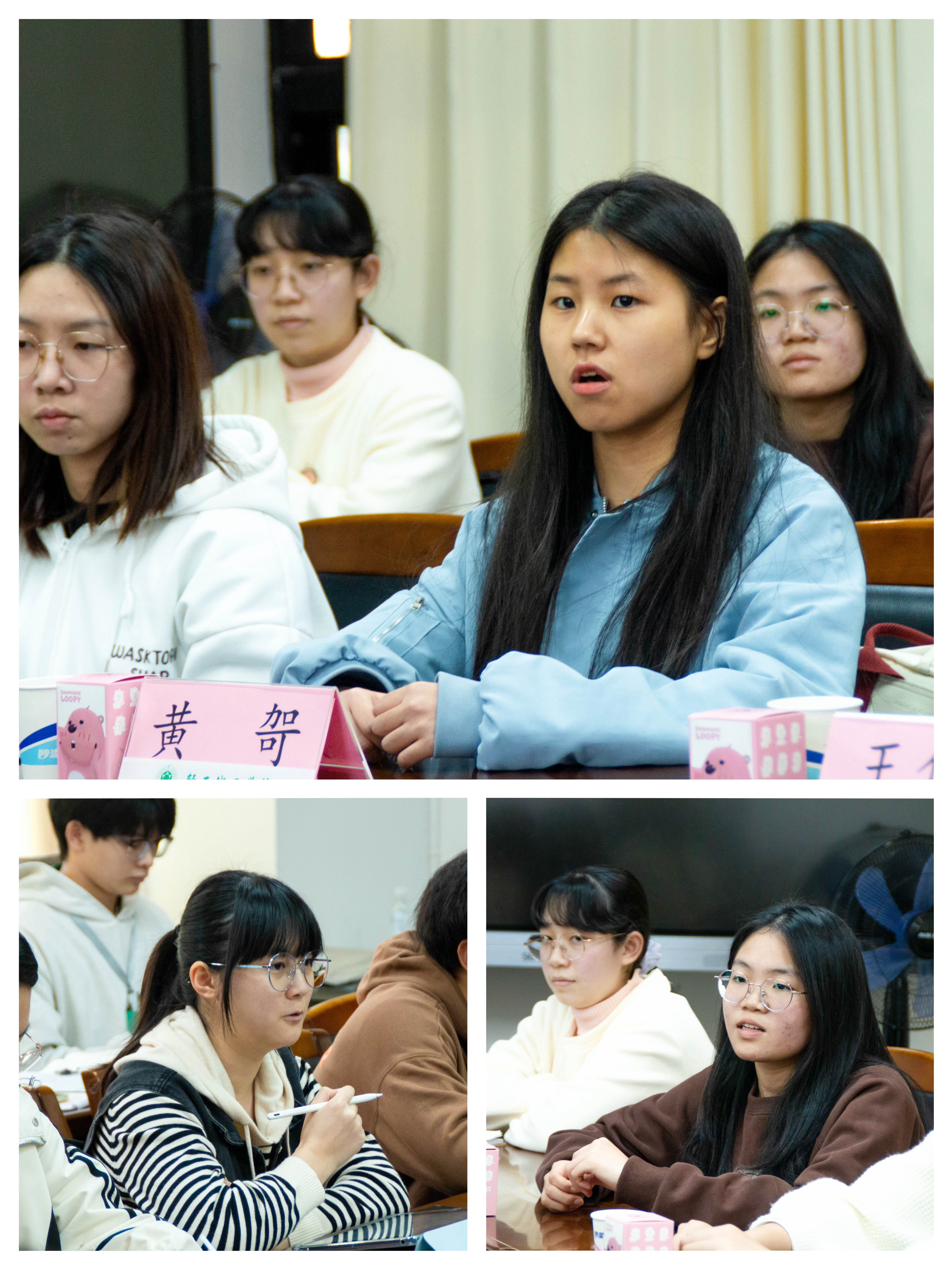 座谈会现场氛围融洽,问答声此起彼伏,来自不同年级不同专业的学生代表围绕大学课程学习、大学生涯规划等方向老师和前辈们交流提问,三位老师和两位前辈就同学们的问题逐一现场交流,悉心解答。