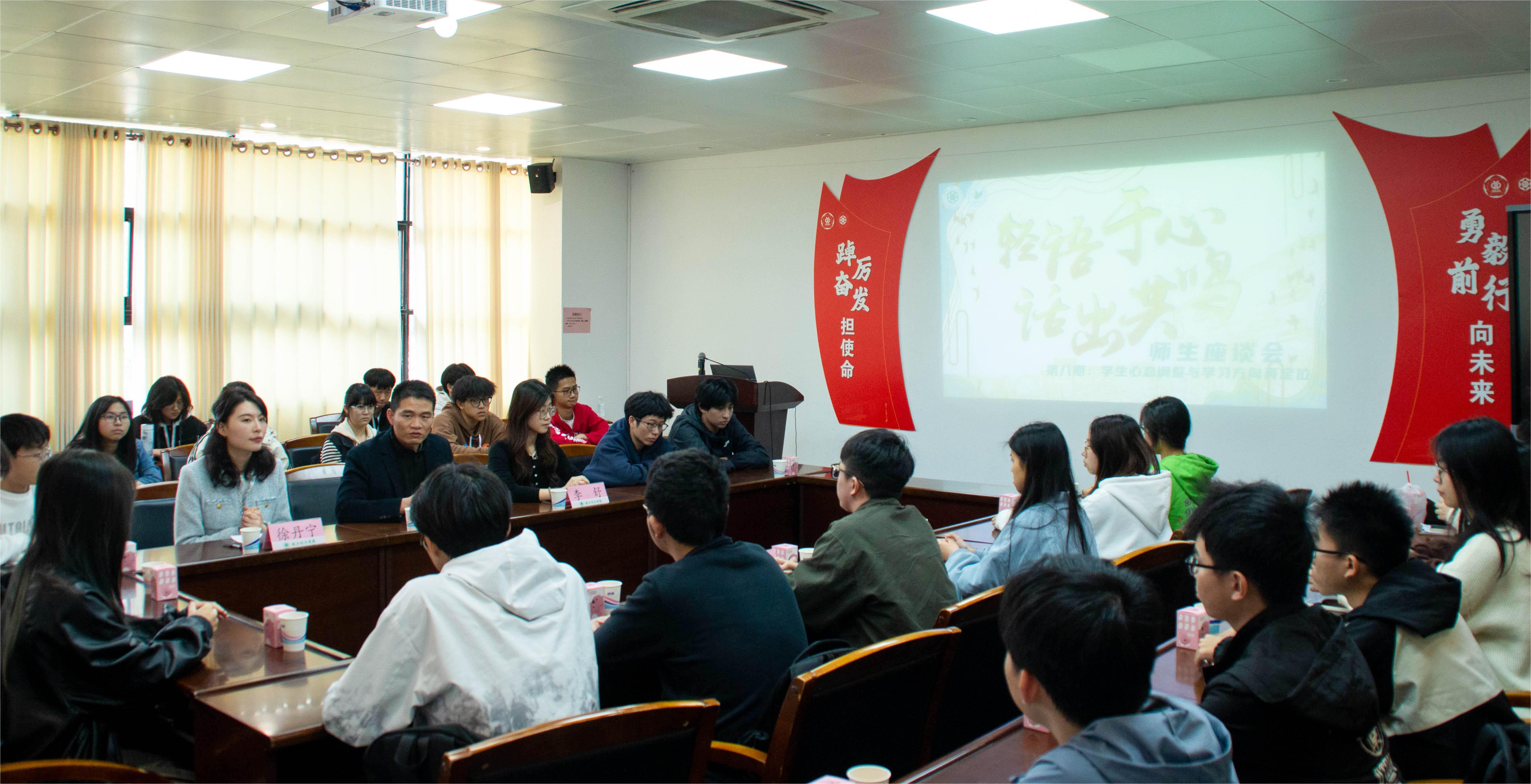 为落实立德树人根本任务,树立良好的院风、学风,帮助同学们调整学习心态,重新定位学习方向,深入反思过去学习生活中出现的问题,以更积极的心态迎接新学期的挑战,3月8日下午,疯AV 在工四202会议室开展第八期“轻语于心,话出共鸣”师生座谈会,本期座谈会深入讨论高等数学、无机化学、大学英语等专业课课程的学习策略,帮助同学们掌握更高效的学习方法。学院党委副书记杨刚老师,学院辅导员李舒老师,21级应化四班王亿泫师兄,22级食品一班黄哿师姐,还有二十余名本科生代表参加了本次活动。座谈会由学院学生会秘书长徐丹宁老师主持。