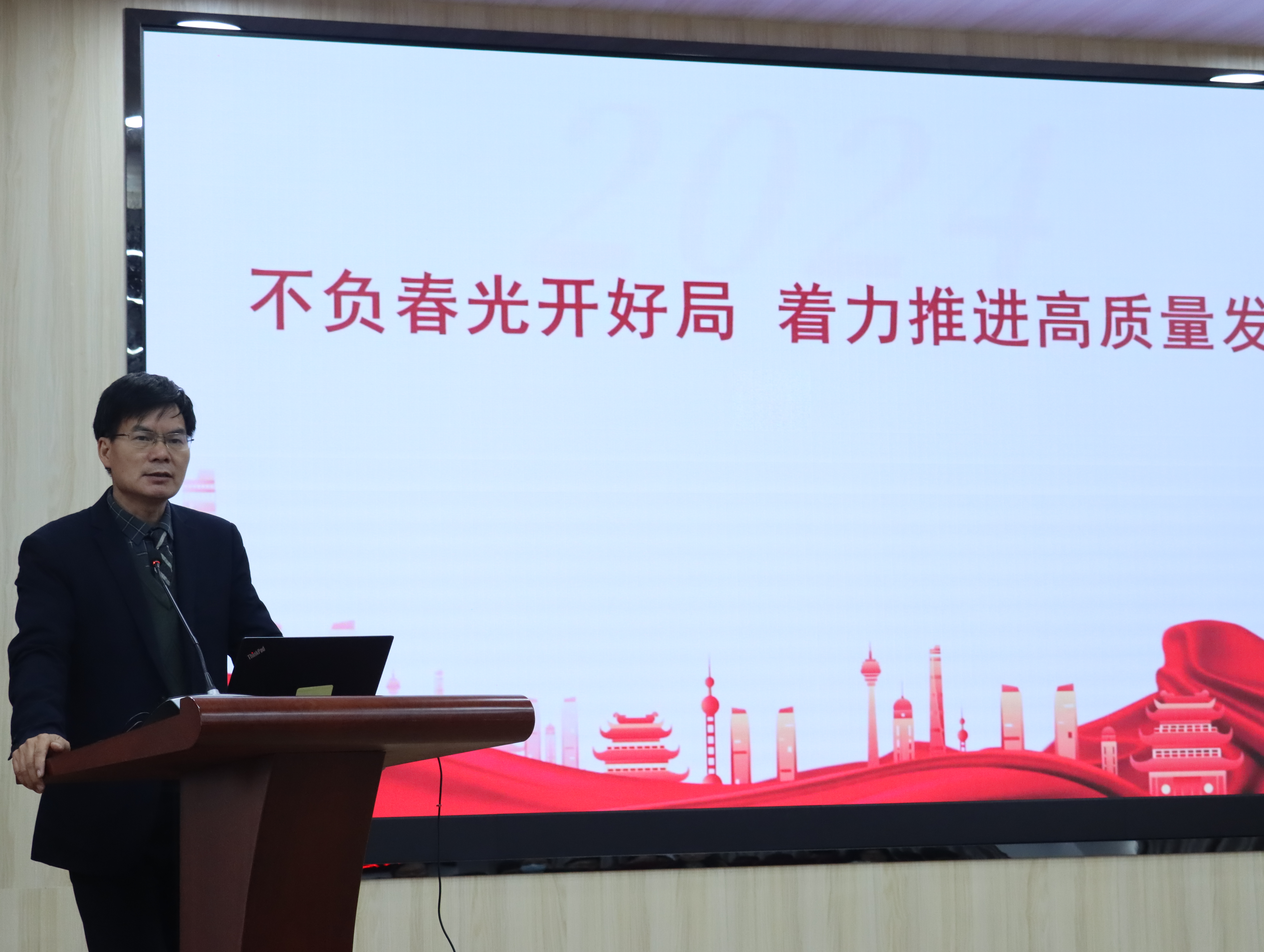 以“新”提质 向“新”出发——疯AV 举行传达学习2024年学校工作会议精神暨新学期学院全体教职工大会