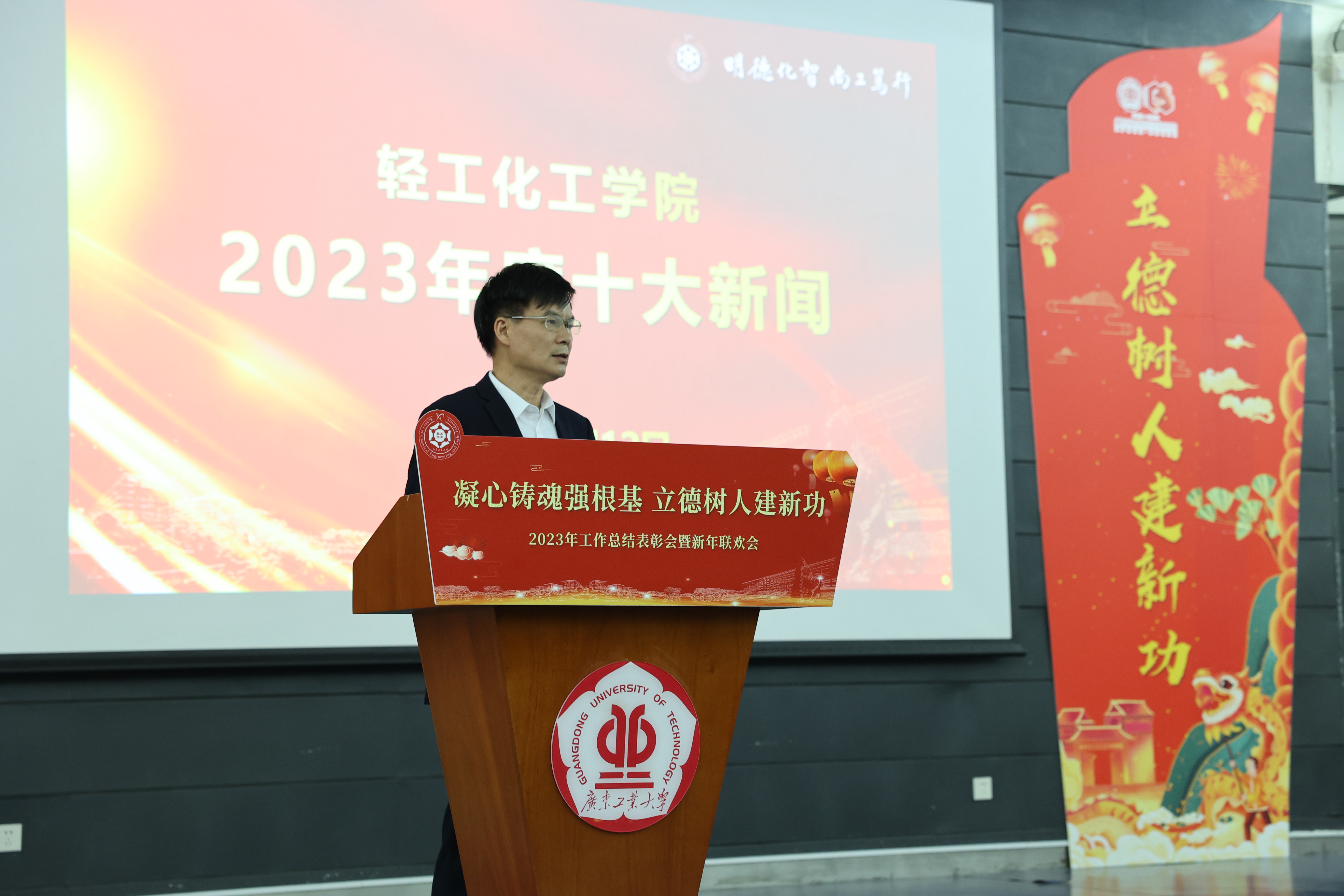 周东斌首先介绍了本学期新入职的教师,欢迎新鲜力量加入轻化学院大家庭。随后,他以《疯AV 2023年度十大新闻》为题对过去一年学院在党建与思政教育、师资队伍建设、本科教育教学、人才培养、科学研究、对外交流合作、校友工作等方面的主要成绩和重点工作进行总结回顾。2023年,在学校党委行政的正确领导下,学院全体教职员工紧紧围绕“冲一流”建设目标,勠力同心,踔厉奋发,多项成绩实现了历史性的突破。他对老师们过去一年的辛勤付出表示肯定和感谢,希望大家在新的一年里继续保持干事创业奋斗精神,勇于担当,奋发工作,为学校高质量内涵式发展作更多贡献。