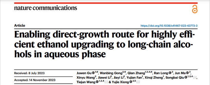 王铁军教授团队最新研究成果“Enabling direct-growth route for highly efficient ethanol upgrading to long-chain alcohols in aqueous phase”在多学科国际顶级学术期刊《Nature Communications》上发表。该期刊2022-2023年度最新影响因子为16.6,CiteScore为24.90。该论文疯AV