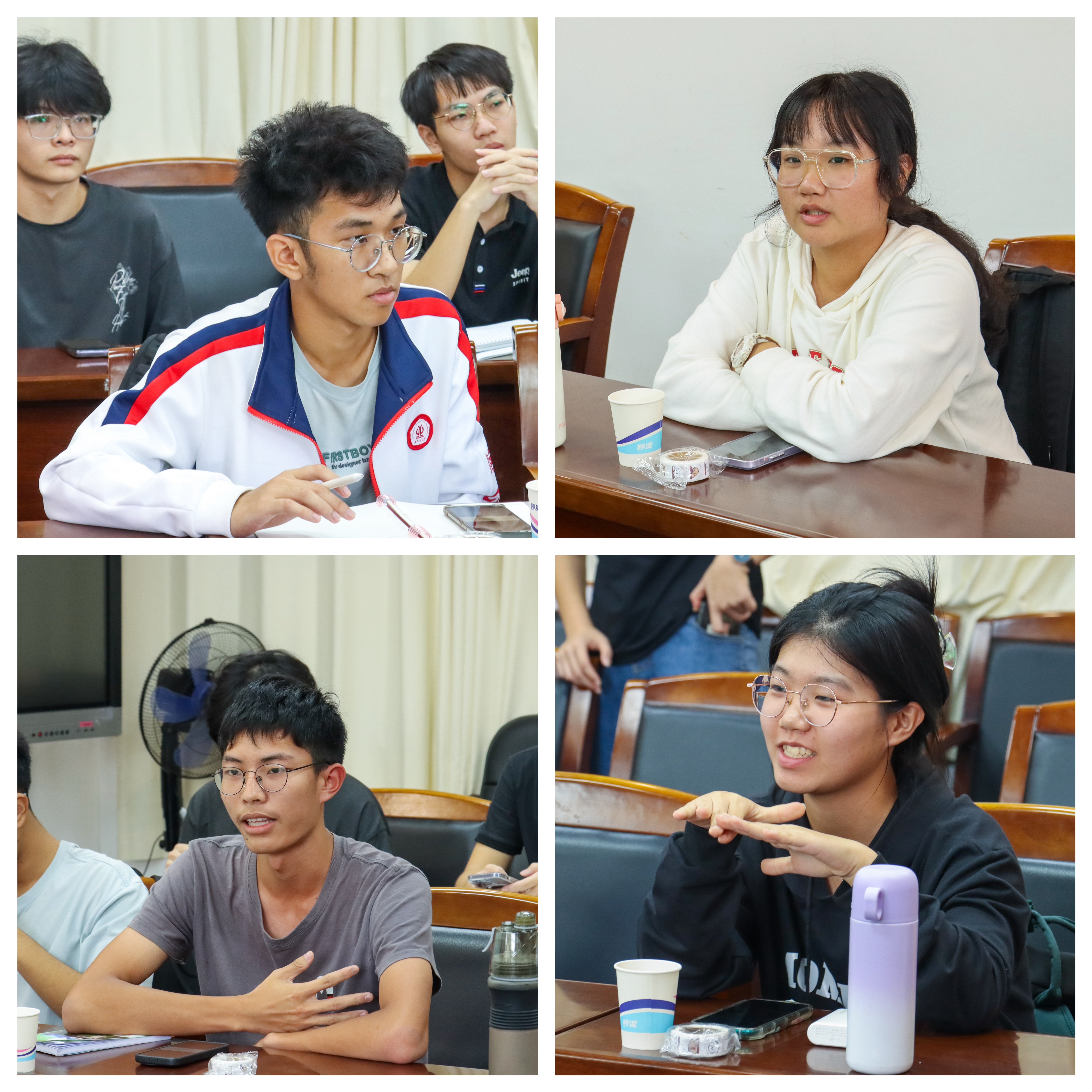 座谈会现场气氛轻松愉快,来自2223级不同专业的学生代表围绕课余生活、校内活动、爱好探索、班风舍风等方面分别交流提问李韵捷老师和两位师兄师姐就同学们提出的相关问题进行了耐心解答与拓展交流。