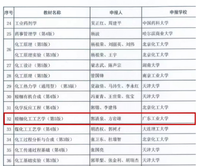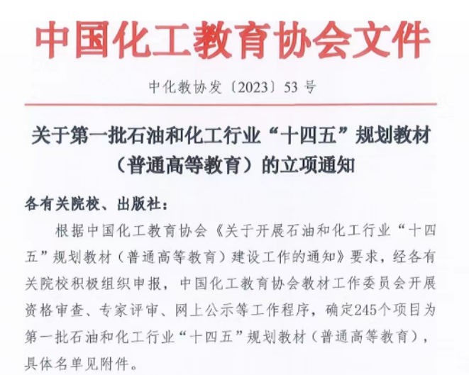郭清泉、方岩雄老师主持编写的《精细化工工艺学(第五版)》近日成功入选第一批石油和化学工业“十四五”规划教材(普通高等教育)。