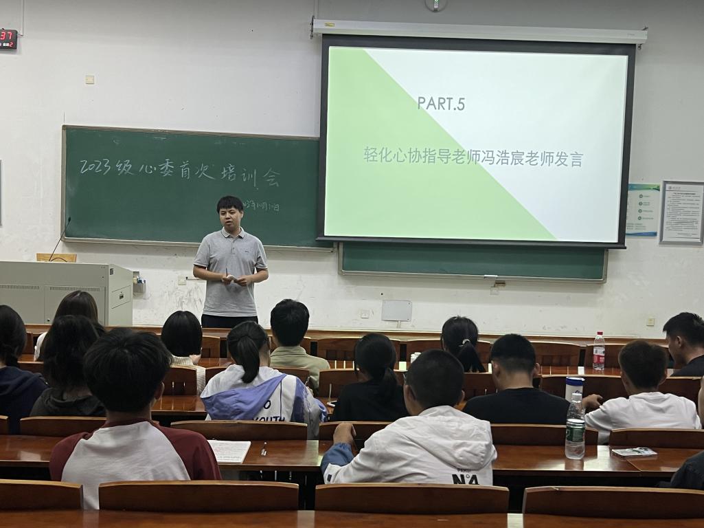 最后,院心协指导老师冯浩宸老师表示,希望心理委员要有责任心,担当起自己的职责,积极配合学院开展各项心理活动,调动班级氛围;发挥自己的主观能动性,多举办一些有趣的班级活动,保持高度的敏锐性,时刻关注同学们的心理变化,了解同学们的心理状况,及时将同学们的心理问题反映给老师,发挥心理委员的纽带作用。