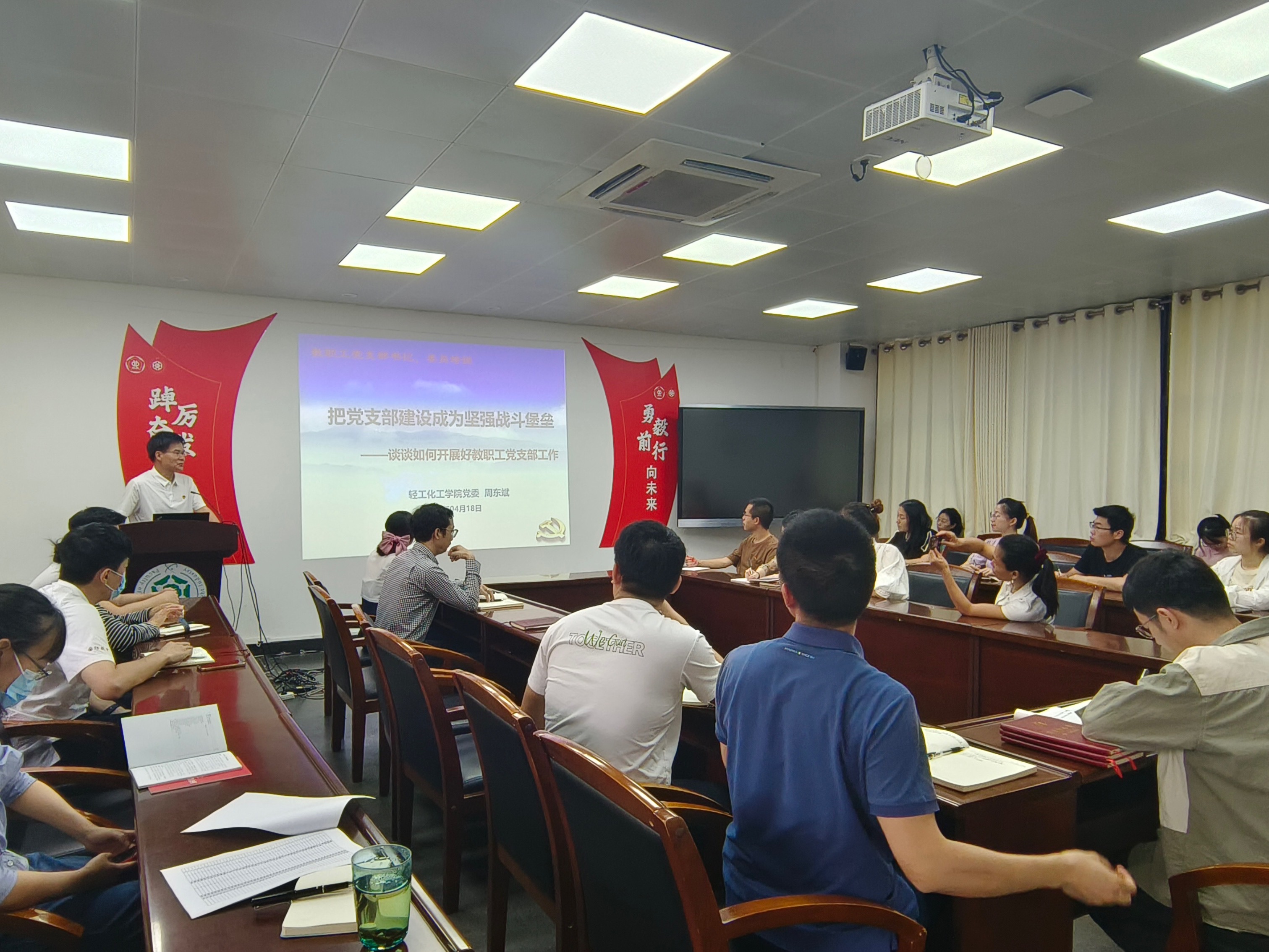 党委在工学四号馆202会议室为全院师生党支部书记与委员举办了培训活动。学院党委书记周东斌做《把党支部建设成为坚强战斗堡垒——谈如何开展好党支部工作》的专题培训,学院师生党支部书记、研究生党支部委员参加了学习。