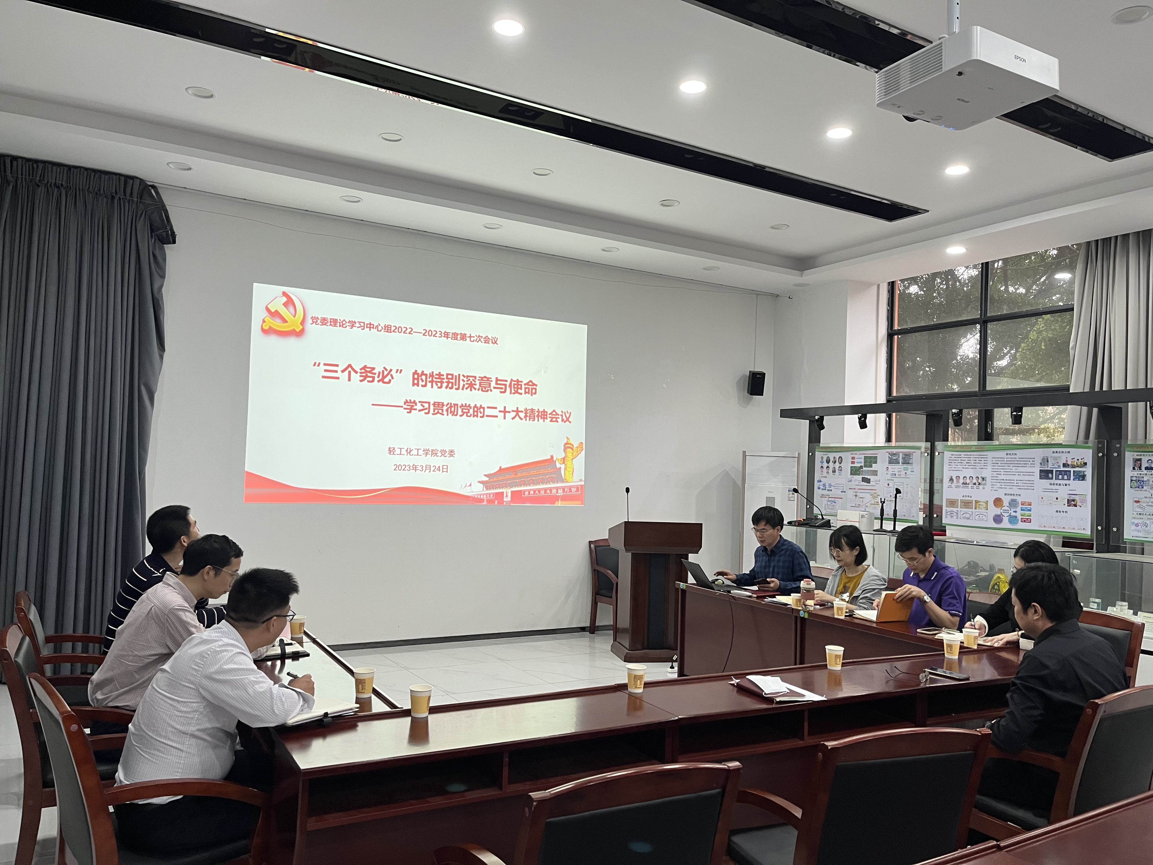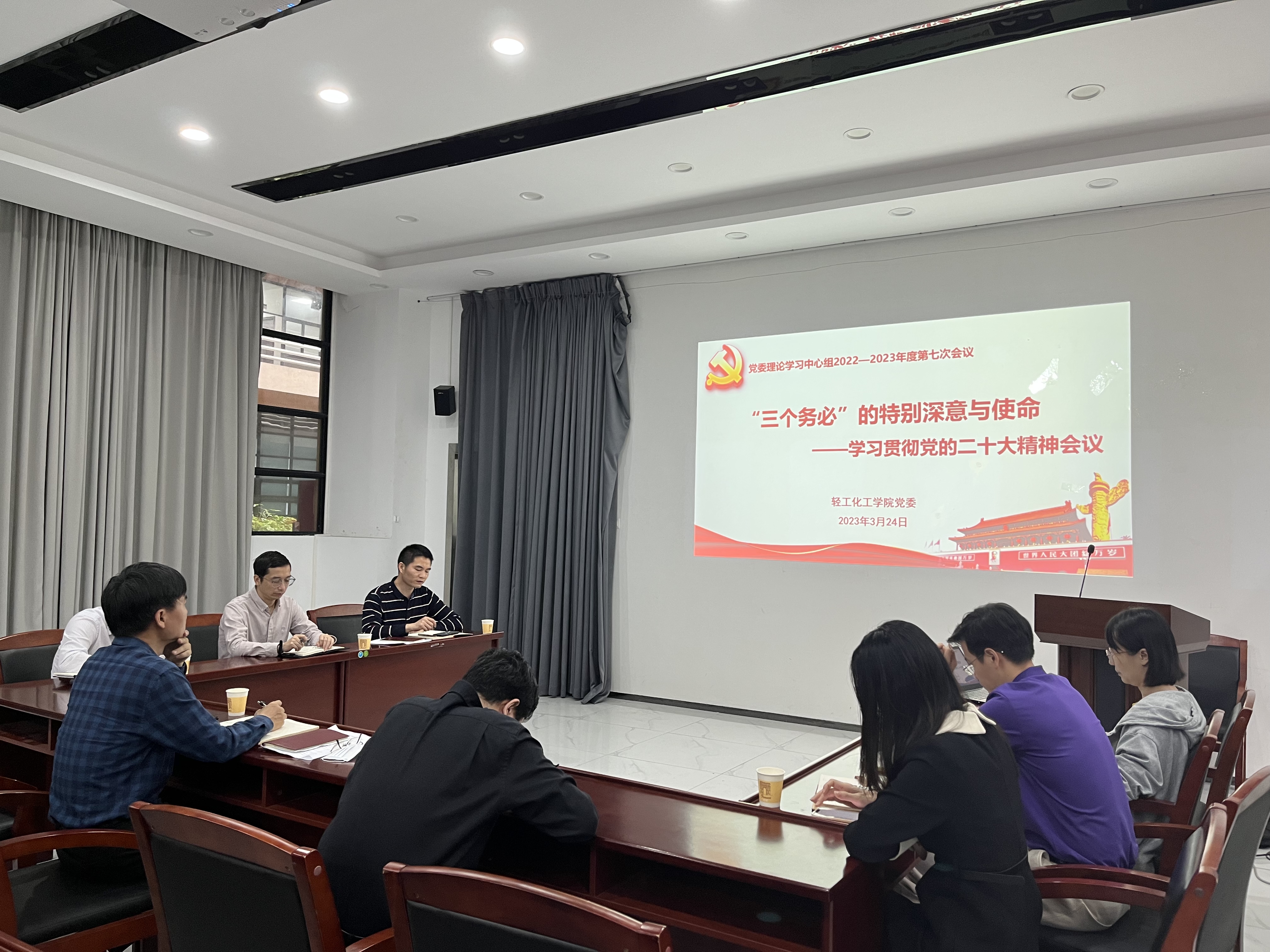 3月24日上午,轻工化工学院党委在工学号馆102会议室召开理论学习中心组学习会议,集中学习习近平总书记关于“三个务必”的重要论断。学院党委书记周东斌主持会议,学院党委理论学习中心组成员参加会议。
