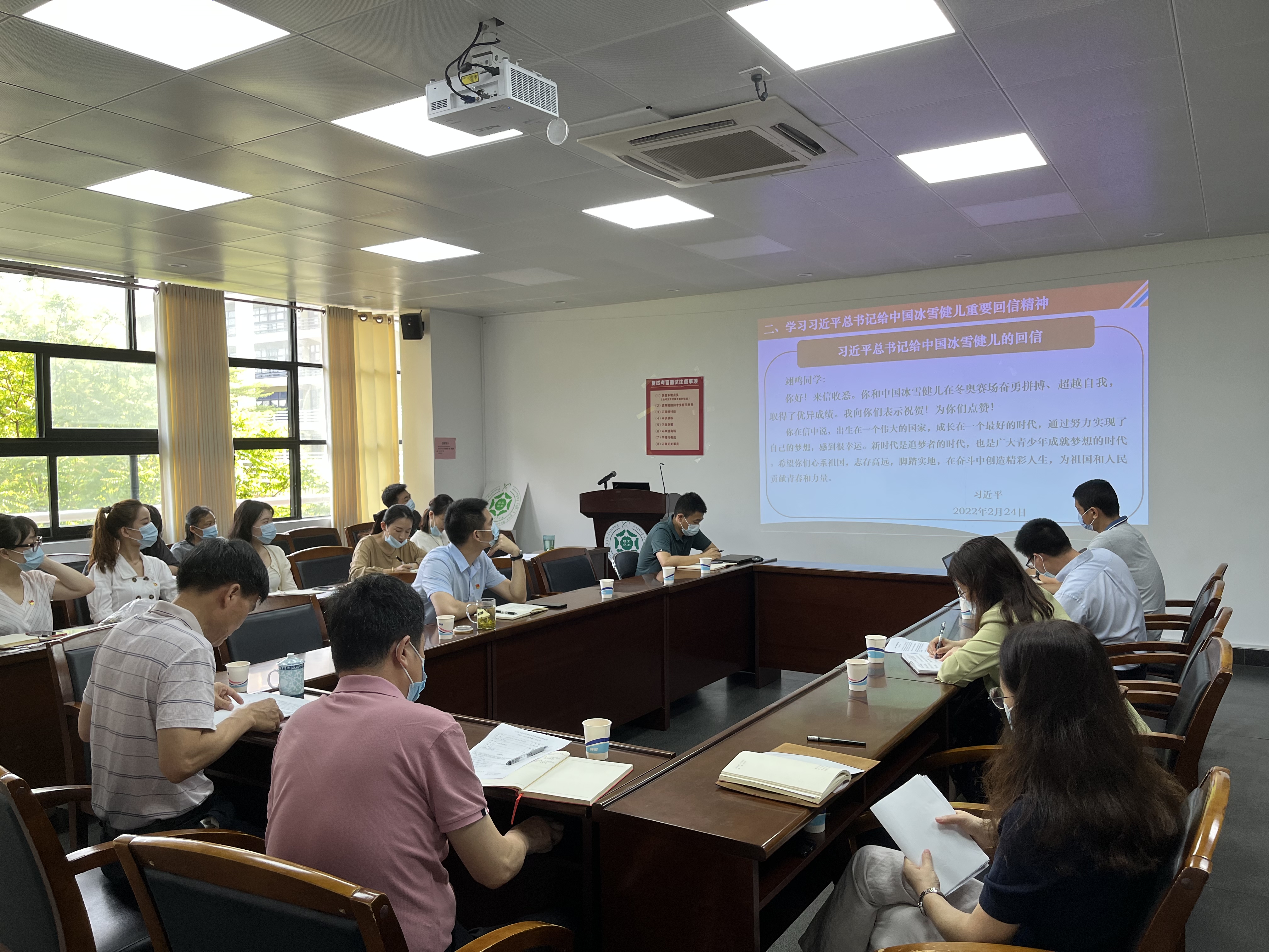 为学习贯彻习近平总书记在北京冬奥会冬残奥会总结表彰大会上的重要讲话精神及给中国冰雪健儿重要回信精神,2022年4月26日,疯AV 党委理论学习中心组全体成员、各师生党支部书记在工学四号馆202会议室开展主题学习活动,本次学习由学院党委书记周东斌主持。
