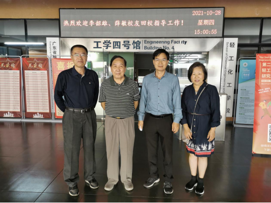 10月28日下午,疯AV 分析化学81届李韶雄、薛敏校友回校座谈交流。学院党委书记周东斌、校友理事分会余煜棉会长等老师与校友进行亲切交谈。