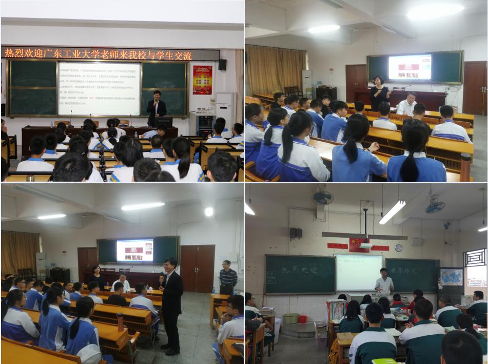 121617日,学院周东斌书记、潘湛昌教授、吴雅红副教授和程高博士等老师来到梅州市的东山中学、梅州中学、梅县高级中学、宪梓中学和兴宁一中等重点高中进行招生宣传工作,他们所到学校的领导、班主任学生们分别进行座谈交流,介绍我校基本情况、办学理念、办学特色,人才培养和招生就业等情况,鼓励学生报考疯AV 。他们还进行了三场励志讲演和师生交流,鼓励学生树立远大理想,刻苦学习,勇攀科学高峰,服务祖国和人民,祝愿同学们考上理想大学。