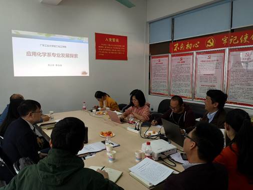 会上,党支部还进行了以党建带专业建设的专题讨论。应化系主任李永峰同志介绍了应用化学系的基本情况、培养特色和将来的发展规划。与会党员教师们就如何进行特色培养、培养方案制定、专业实验设计和专业实验室建设发表了自己的看法。在国家“双一流”和广东省“冲一流、补短板、强特色”战略背景下,结合我系培养特色、课程体系、学生生源以及毕业生就业市场的实际情况,旨在规划、改革和建立对标工程认证标准的应用化学系本科特色专业。