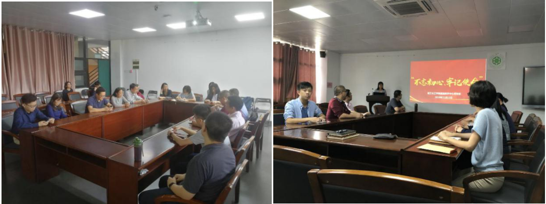 11月12日下午2:00,基础教学中心党员教师在工学四号馆20会议室2召开主题教育活动,会议由党支书籍少敏同志主持,学院副院长郑育英同志给大家做了以“不忘初心、牢记使命”为主题的微党课,并与基础教学中心的老师们以如何夯实基础教学中心五大化学基础课程进行深入交流。