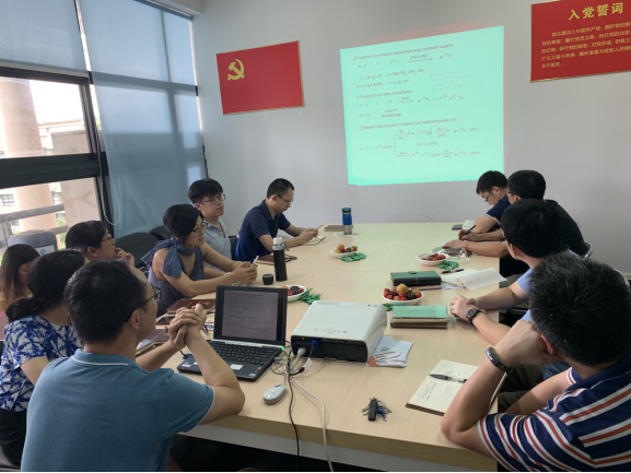 首先,高杨博士以“钯催化丙烯酸脱羧烯基化反应研究”为题,谈了个人对Heck反应和脱羧偶联反应的认识和理解,然后以自己访学期间发表的论文为例,深入解析了钯催化下丙烯酸脱羧进行烯基化的系列反应,通过反应条件优化、控制性实验以及底物拓展,阐明相关的机理及产物应用前景。随后,罗洪盛副教授作了“公派访学回国工作汇报”,他详细地分享了作为国家公派新加坡南洋理工大学访问学者期间的心得体会,并针对自己在访期间的工作选题、方案设计、研究进展与成果进行了汇报与总结,让与会的教师们对“自复位、防水、可调、具形状记忆微结构的摩擦纳米发电机及其在自供电水温传感器方面的应用”有了新的认识。