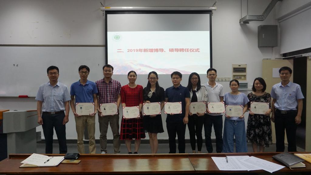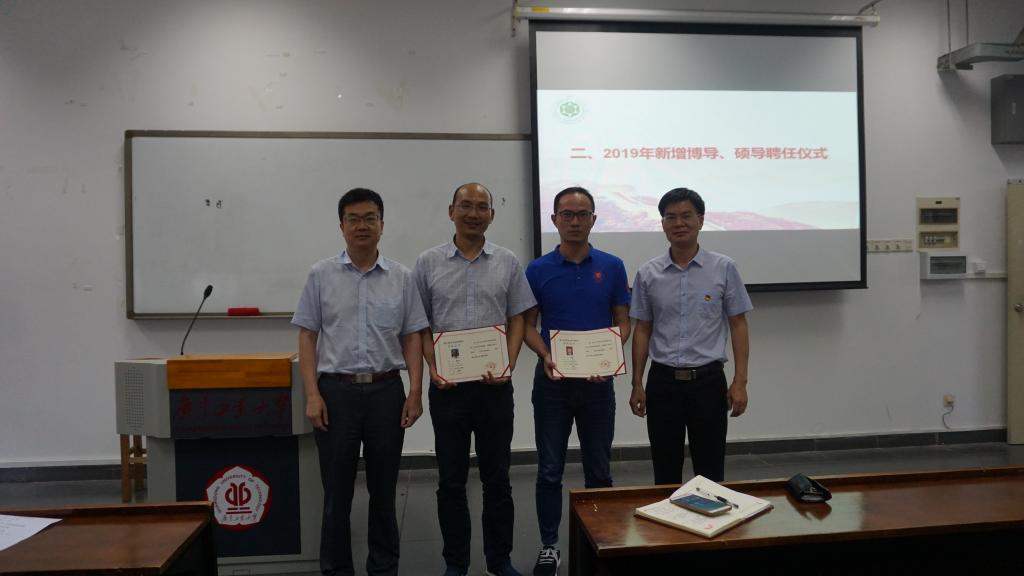 会议的第二部分是2019年新增博导、硕导聘任仪式。由周东斌书记和王铁军院长为疯AV 新增导师颁发聘任证书并合照留念。
