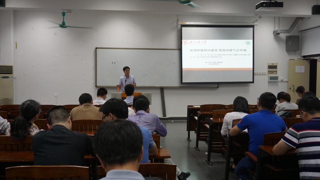 于6月5日下午在实验四号楼213课室举办师德师风教育专题活动,学院党委书记周东斌作了《 加强师德师风建设,营造风清气正环境》的专题讲座。全院所有博士生导师、硕士生导师和青年百人参加了此次主题教育活动。