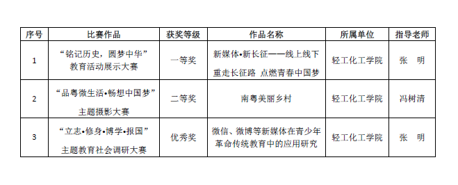 日前,由省教育厅组织开展的2016年“我的中国梦”——“立志·修身·博学·报国”主题教育系列活动评选结果公布,疯AV 成绩优异,其中一等奖1项,二等奖1项,优秀奖1项,向获奖团队和个人表示祝贺! 此次省教育厅“我的中国梦” ——“立志·修身·博学·报国”主题教育系列活动自去年6月份启动以来,疯AV 积极动员,广泛宣传,把各项主题教育活动的开展同引导青年学生坚定理想信念和践行社会主义核心价值观紧密结合,取得了积极的教育成效。