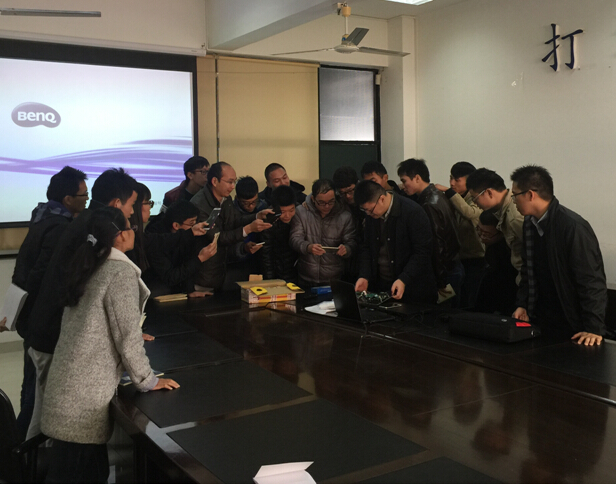 师生进行了热烈的交流,戴博士首先就“柔性OLED显示材料湿法印制的关键技术.”进行了介绍,也特别强调了只有产学研协同进行,才可能开发出更具市场竞争力的可印刷型OLED材料。随后又现场演示了柔性OLED显示屏的工作原理,学院的老师和同学们也就OLED材料前沿热点问题与戴博士进行了热烈交流。 本次报告会由轻化学院副院长霍延平主持,院长助理潘春阳,刘兴国等老师及研究生和本科生同学参加。
