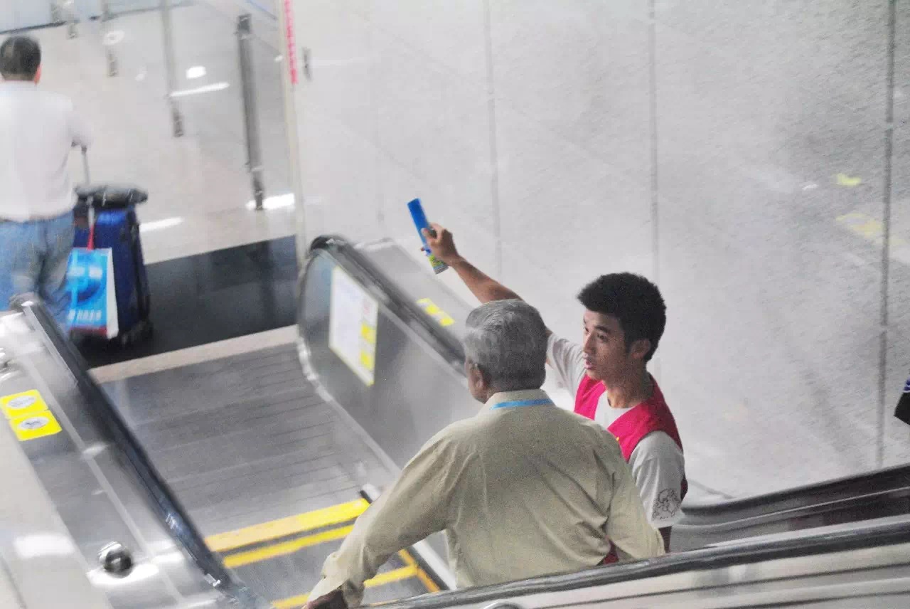 “我被分到了自动扶梯组,跟别人说话交流的机会不多,但保持标准站姿一直站在那里真心累啊!不过能帮助到他人,这让我感到非常开心。”