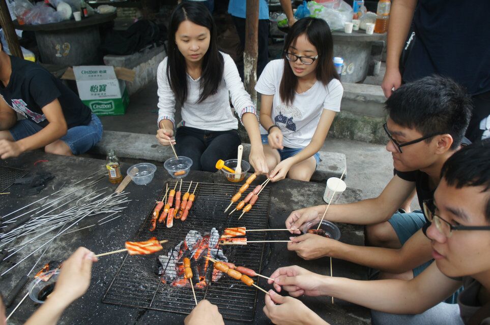 天公作美,万里晴空,早上10点,所有成员集体乘车到达金星农庄。游览农庄后,大家就着手准备午餐。从生火到切菜,从烧烤到做菜,大家分工合作,各施所长,不多久,一道道夹杂着大家辛勤与付出的美味佳肴铺满了桌子,大家围坐一席,谈笑风生,品尝着团结与协作的劳动成果,脸上都写满了自给自足所带来的幸福感。之后是娱乐项目时间,水上游乐设施令人印象颇深,桌游则是智力的较量。紧接着是素质拓展游戏时间,协会成员随机分组开展拓展,“一只青蛙”活跃了现场气氛,破除了部分同学的拘泥情绪,“打绳结”锻炼了大家的团队协作能力、互帮互助精神,“缓冲墙”则考验了大家互相之间的信任度,通过各种小游戏,让大家互相熟悉、了解,也让大家深深感受到协会的团结与友爱,本次活动也在这欢乐的气氛中结束。