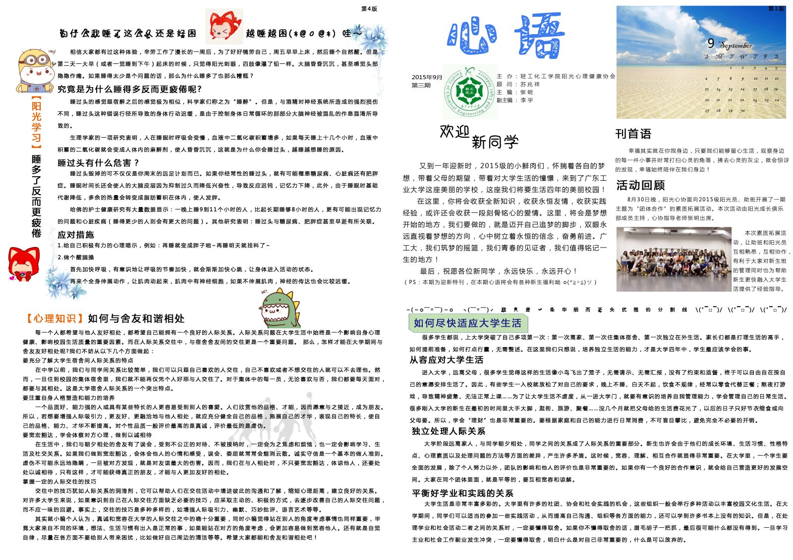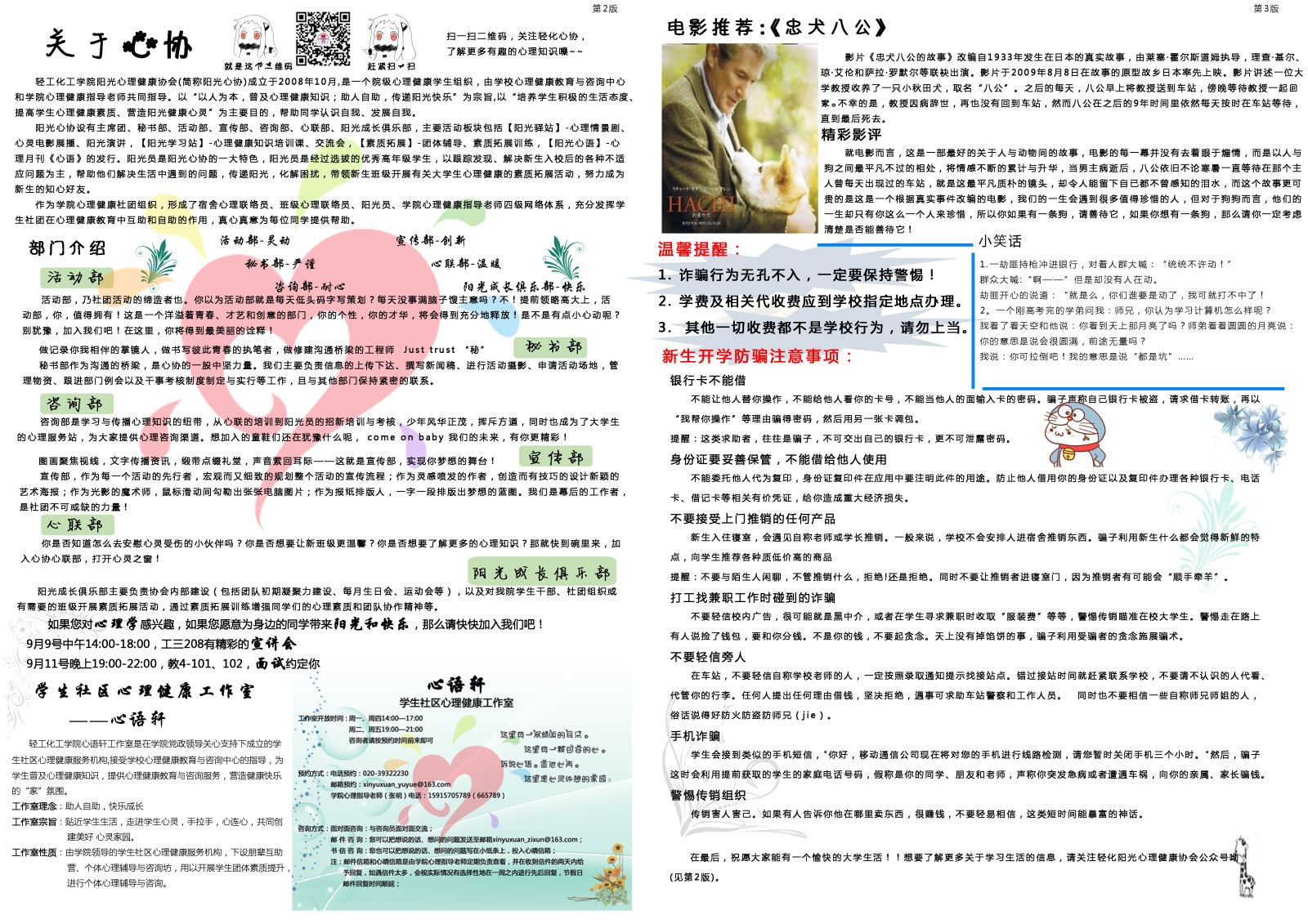 【阳光心语】轻化学院心理健康报《心语》第三期—新生特刊