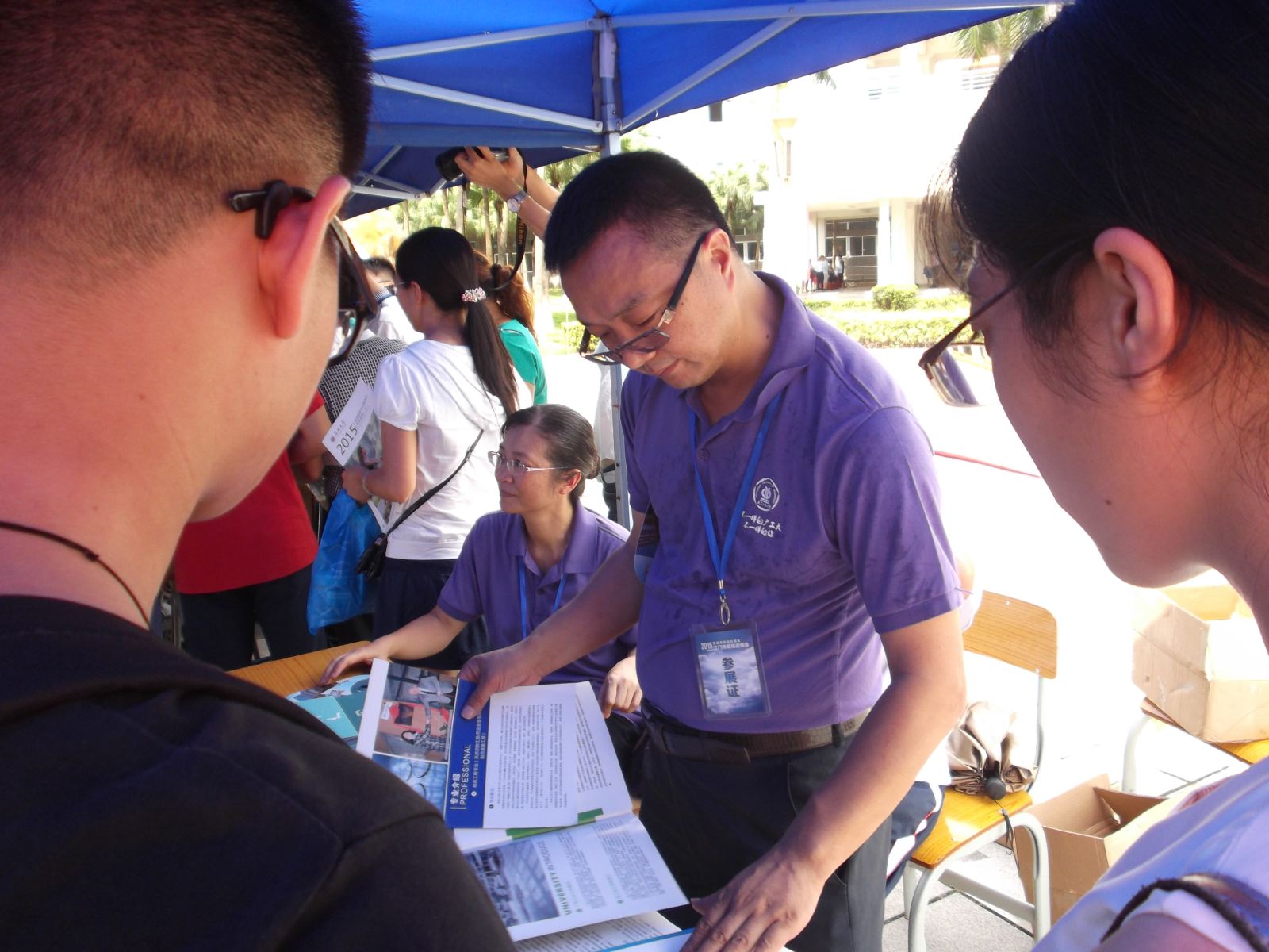 6月14日,我校赴江门招生宣传工作小组派出由疯AV 杜志云副院长、材料与能源学院英健文副书记、外国语学院辅导员王荟荃老师组成的宣传组开赴江门职业技术学院参加2015年普通高等学校招生江门市现场咨询会。