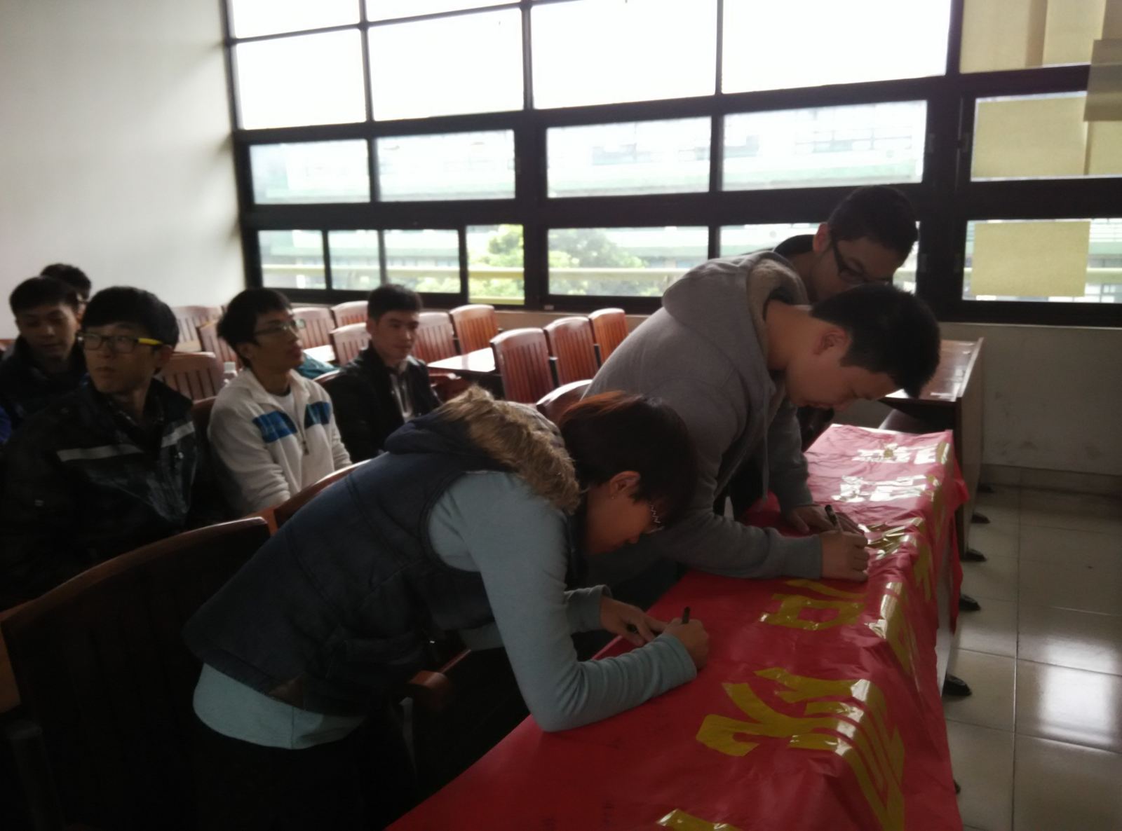 12月3日下午,支部主持召开了学习会,认真学习《中共中央关于全面推进依法治国若干重大问题的决定》的内容,学习过后,支部党员先后发表对《决定》的学习认识和体会,大家纷纷表示,党员更应该要带头维护宪法和法律的尊严,做一名遵纪守法、严格要求自身的合格党员。最后大家还在“增强法治观念,树立法治意识——依法治国与我们同行”的横幅上庄严的签下了自己的名字。