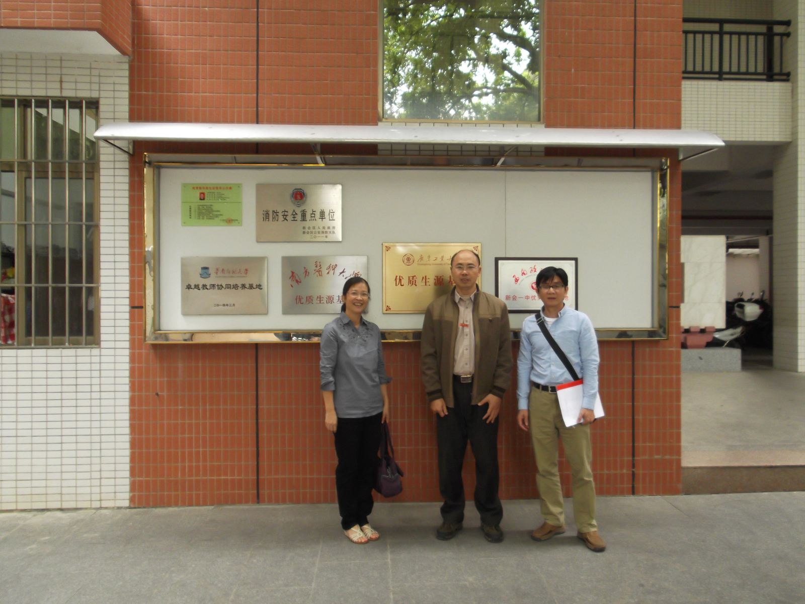 派出由学院党委副书记英健文、基础教学中心党支部书记李红、学院团委书记林焕章组成的工作组,先后到江门地区与我校挂牌成立优质生源基地的江门一中、鹤山一中、鹤华中学、新会一中、开平一中、开侨中学、长师中学、恩平一中、台山一中等重点中学和今年10人以上考上我校的新会侨中和新会陈经纶中学共11所中学进行了招生回访。