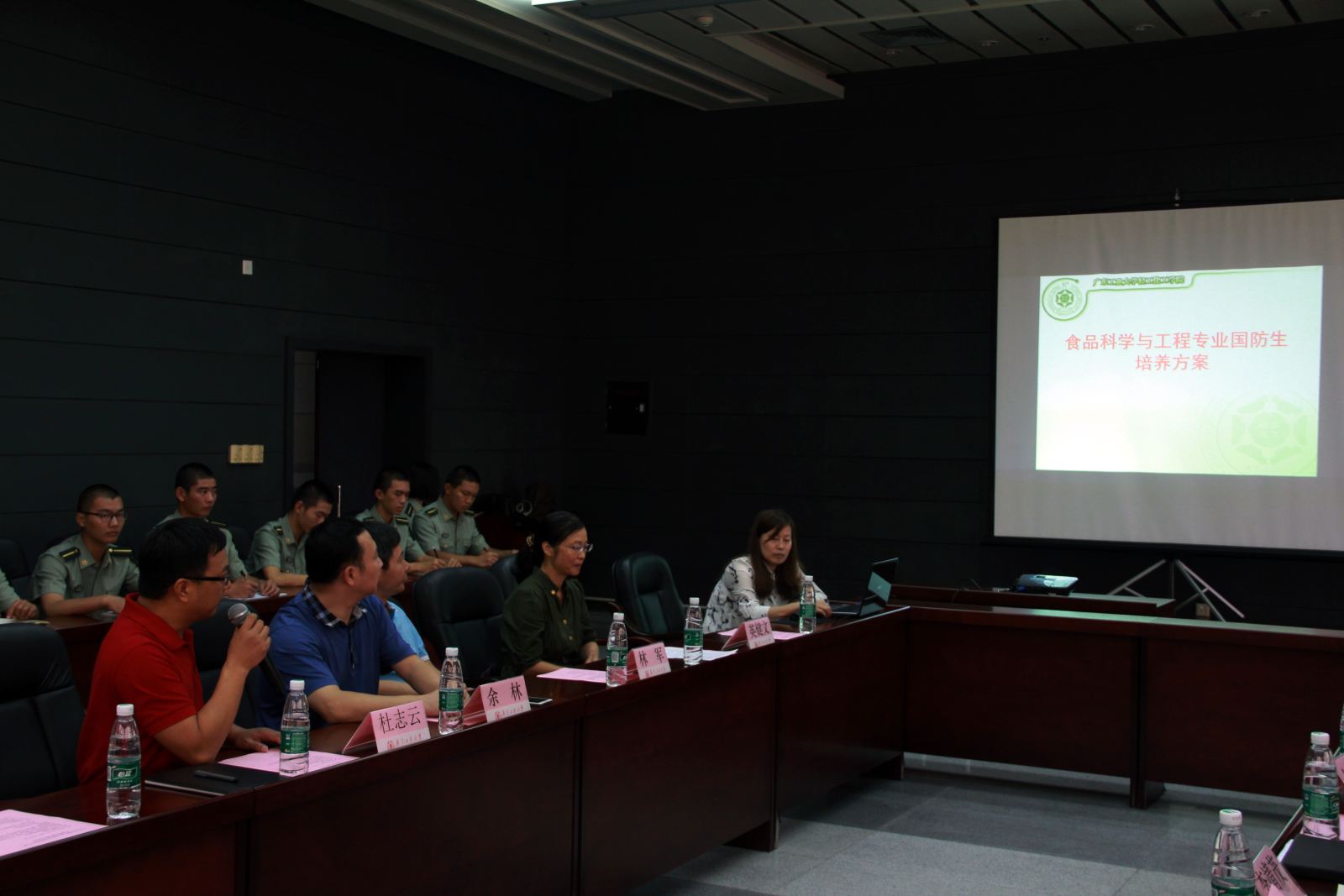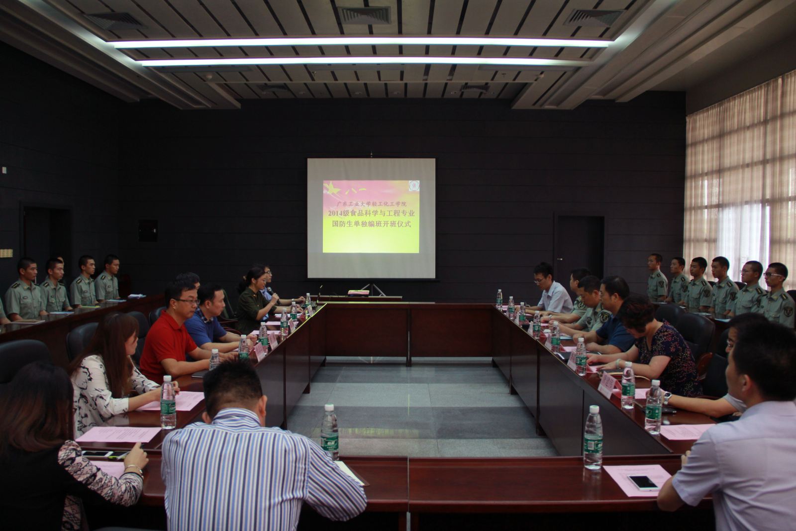 首先何汉武处长就国防生班开班致贺辞,他表示国防生是学校一道亮丽的风景线,学校一直以来重视国防生培养教育,教务处也将一如既往支持国防生培养工作,全力支持疯AV 国防生培养方式的改革创新。杜志云副院长介绍了食品专业国防生班培养的总体思路,即培养专业功底扎实、军事过硬的满足部队第一任职需要的优秀后备军官干部。刘晓丽副教授具体介绍了食品科学与工程专业国防生的培养方案。