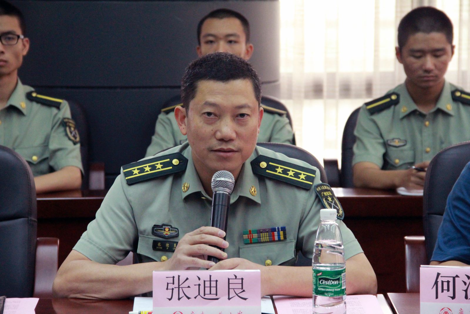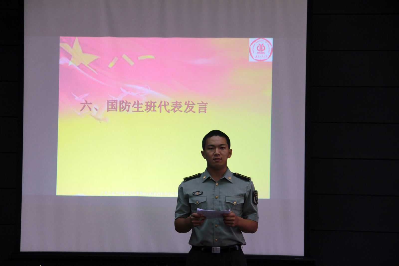 最后,张迪良主任作出重要讲话,对国防生班提出“三个走在前面”的要求:一是班风学风走在前面,要求国防生班减少挂科、降低淘汰,同时加强与自然班、其他专业年级国防生的交流,做到不抛弃、不放弃;二是科研创新走在前面,积极争取将国防生科研项目与部队建设实际需要相结合,努力提升国防生的核心竞争力;三是军事文化走在前面,自觉加强军事思想的学习,注重国防生言行举止和优秀军人素质的修养,不断提升综合素质。