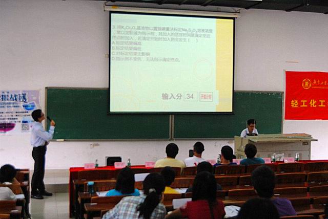 本次决赛分为“题海穿金甲”、“五彩缤纷”、“舌尖上的化学”、“速度与激情”等环节。比赛不仅包括了许多专业的化学知识,也涉及了许多生活中的化学小常识,理论联系实际,让同学们充分利用所学的化学专业知识去联系生活,解释生活。现场气氛活跃,决赛过程中穿插着互动环节,更是将观众们的热情带到高潮。最后经过一番激烈的角逐,冠军由12食品4班“单黄双李”队伍夺得。至此,化学挑战赛圆满结束。